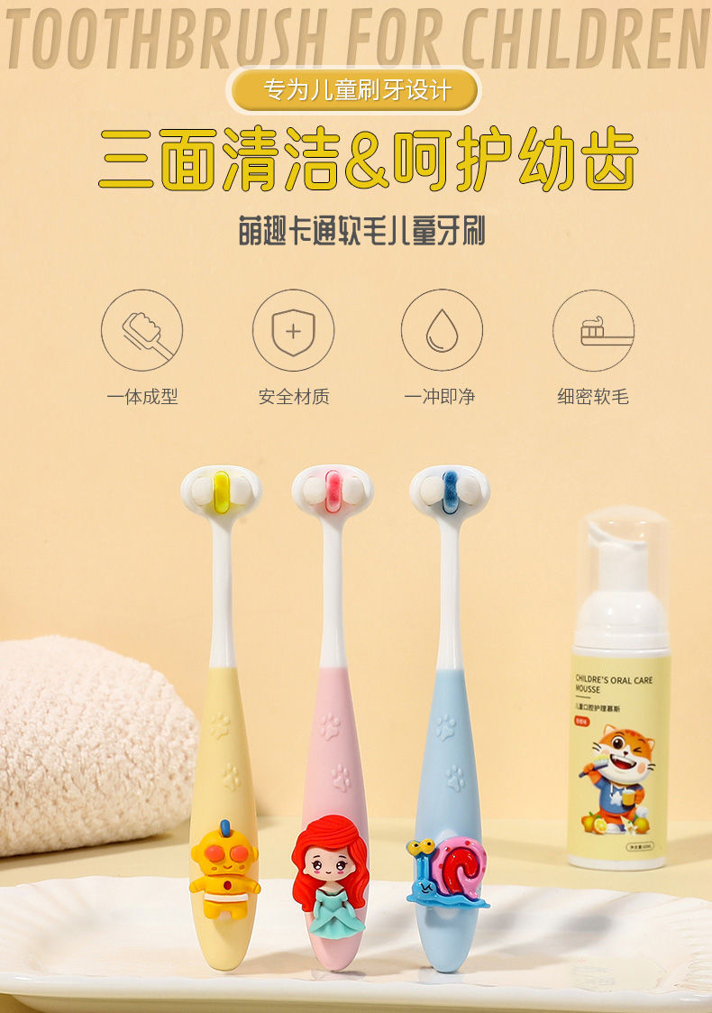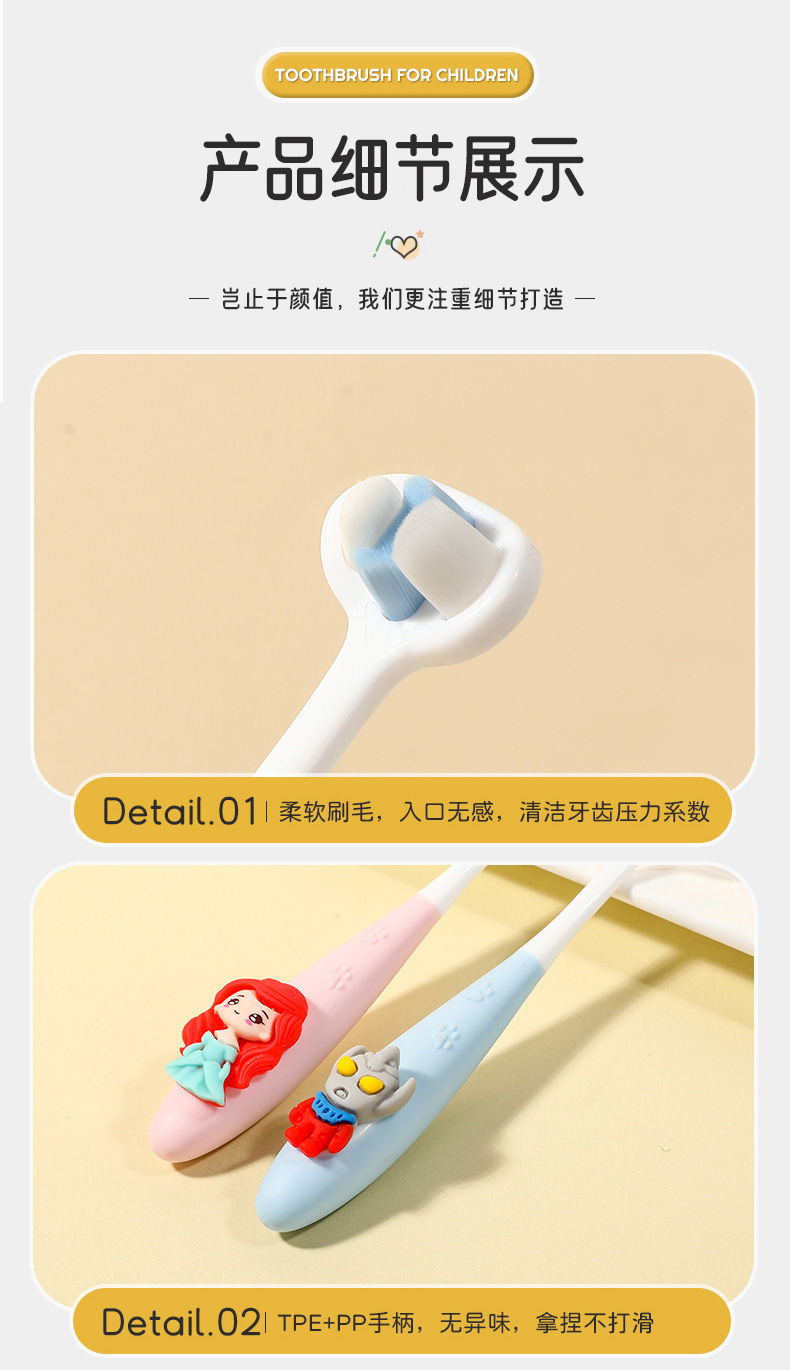 크리 에이 티브 어린이 유아 머리 부드러운 5D 3 면 만화 공주 알트만 0-1-3-6 세 칫솔
