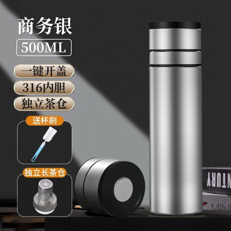퀵 오픈 컵 보온병 컵 물컵 316 스테인리스 차 물 분리 컵 원 버튼 오픈 뚜껑 컵 야외 자동차 찻잔