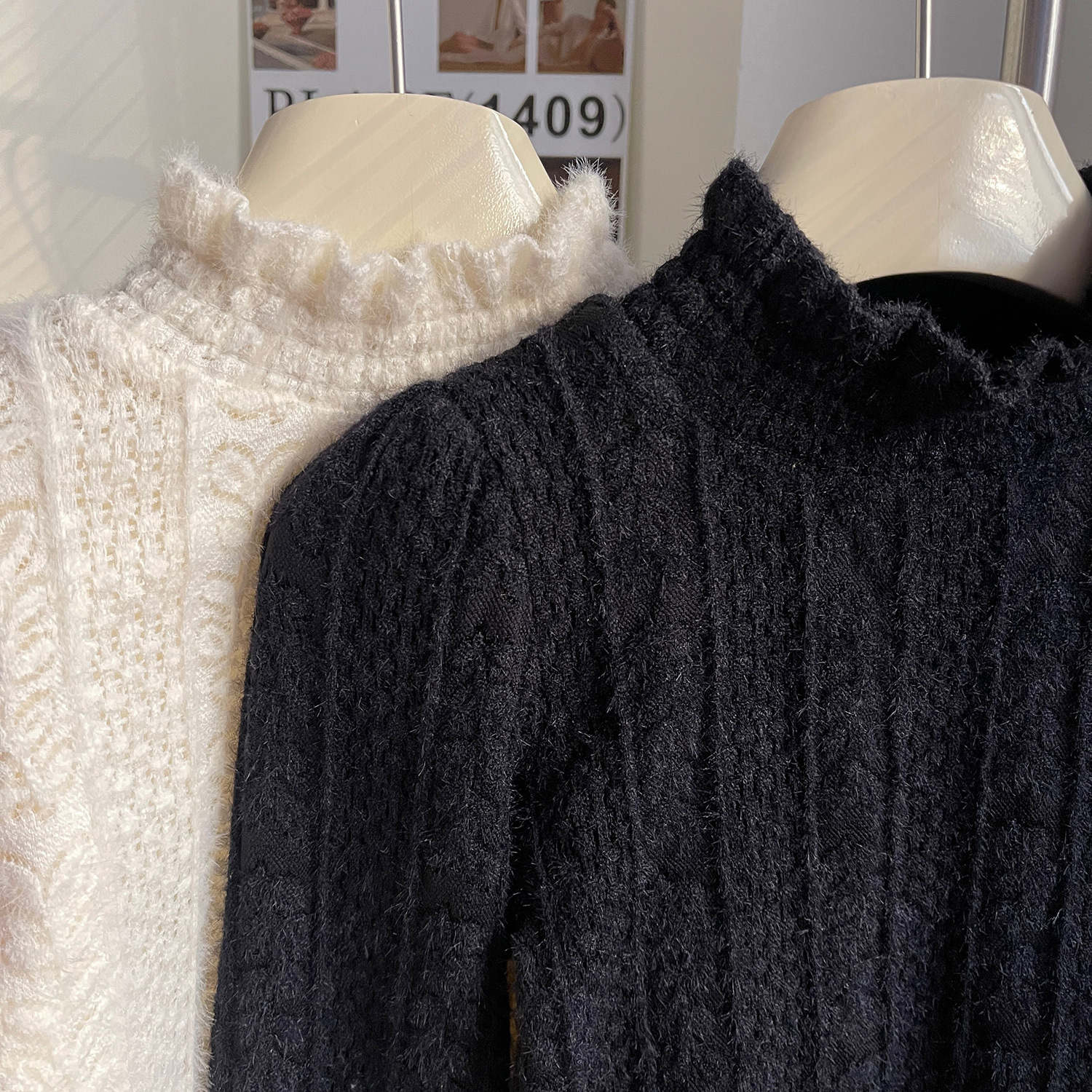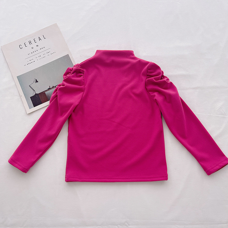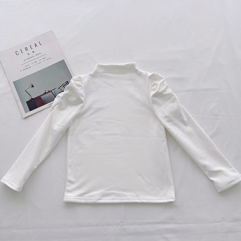 MDD 어린이 기모 높은 칼라 바닥 셔츠 2024 가을과 겨울 새로운 소녀 한국 레이스 긴 소매 두꺼운 탑