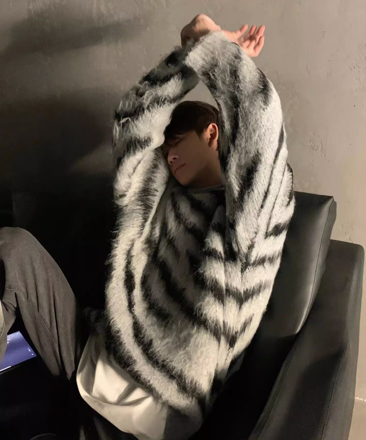 긴팔 스웨터 남자 겨울 Margiela 승무원 목 특대 스웨터 아우터웨어 기본 대비 색상 모헤어 스웨터스토어 가기