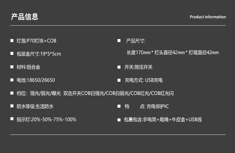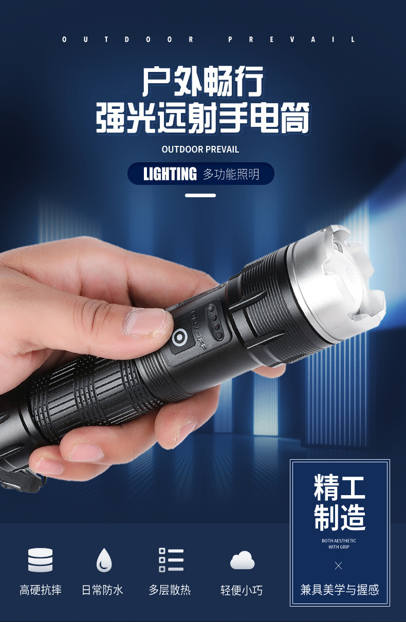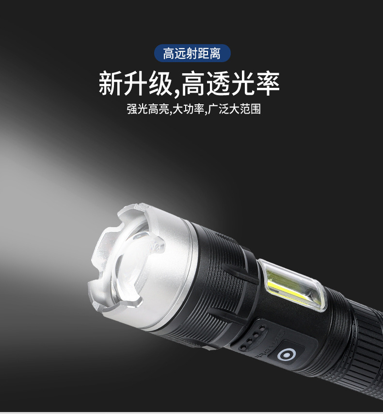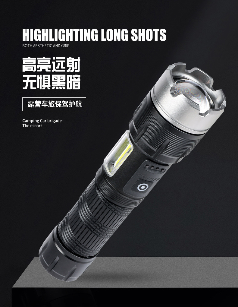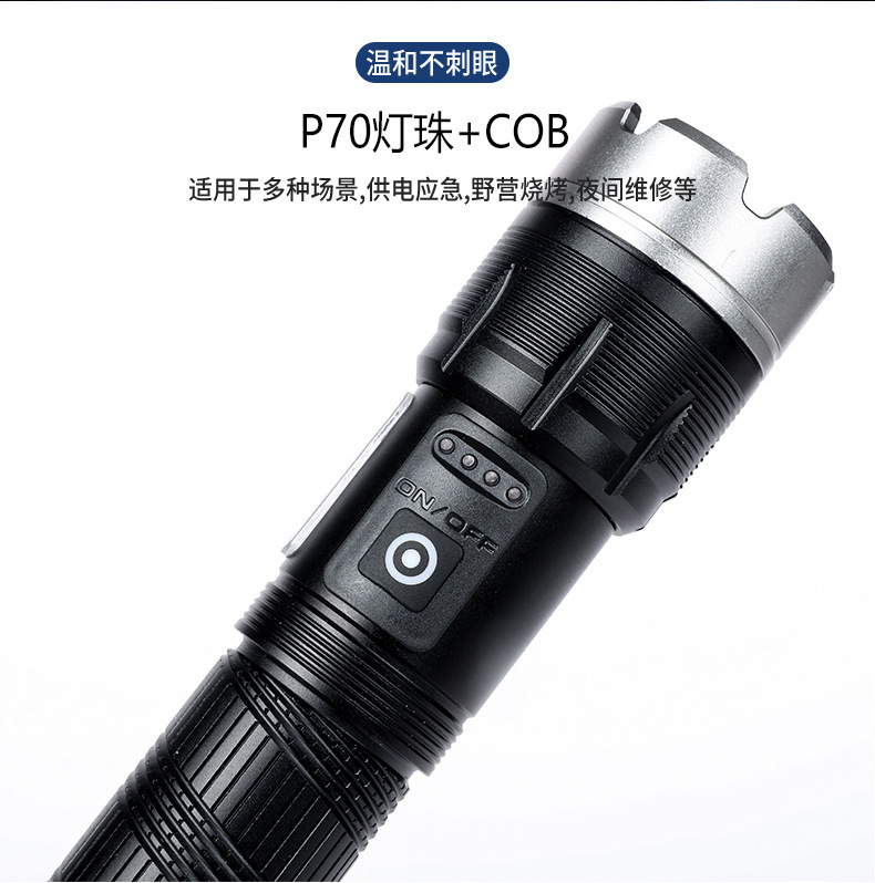 국경 간 무역용으로 특별히 제작된 P70LED 손전등, COB 사이드 라이트, 실외 조명, USB 충전, 전동식 줌, 휴대용스토어 가기