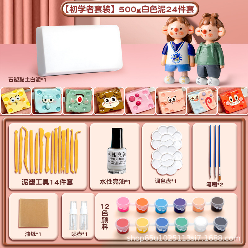 돌 점토 DIY 재료 패키지 세트 어린이 수제 점토 금형 점토 논베이킹 공기 건조 부드러운 점토 도구스토어 가기
