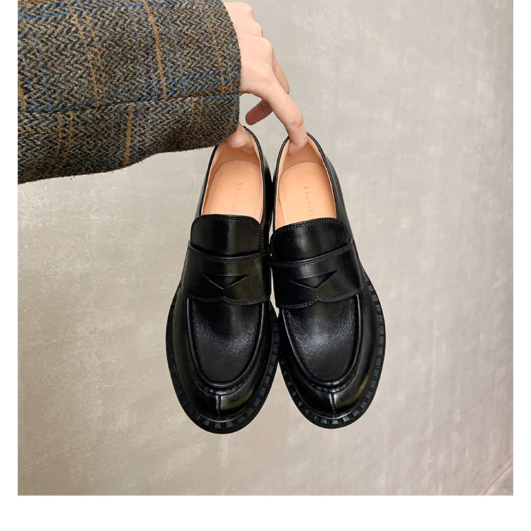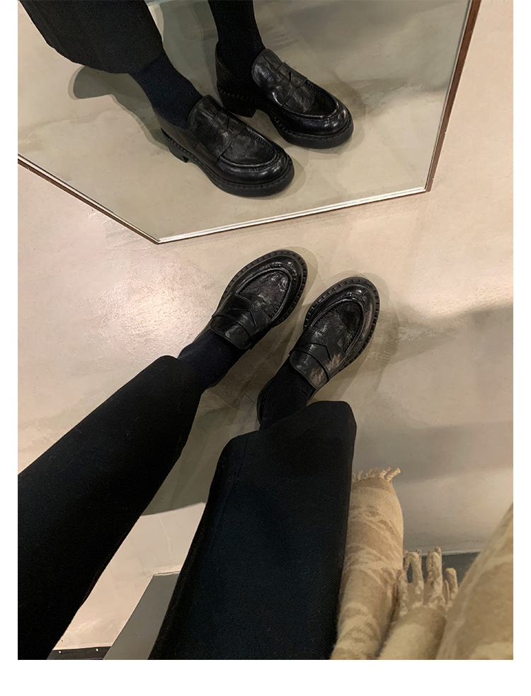 플러스 사이즈 여성 신발 41-43 가을과 겨울 복고풍 영국 스타일 단일 신발 수입 버팔로 두꺼운 뒤꿈치 Lefu 작은 가죽 신발 여성의 조수스토어 가기