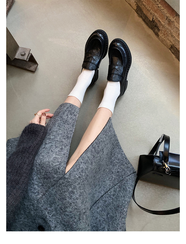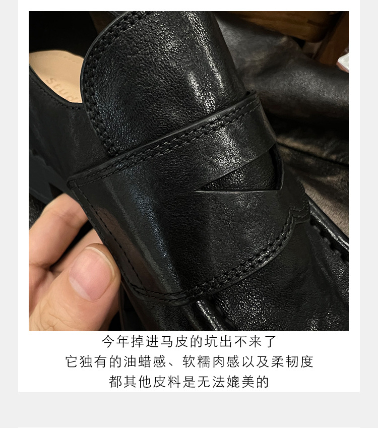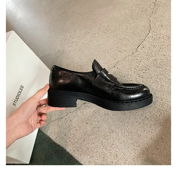 플러스 사이즈 여성 신발 41-43 가을과 겨울 복고풍 영국 스타일 단일 신발 수입 버팔로 두꺼운 뒤꿈치 Lefu 작은 가죽 신발 여성의 조수