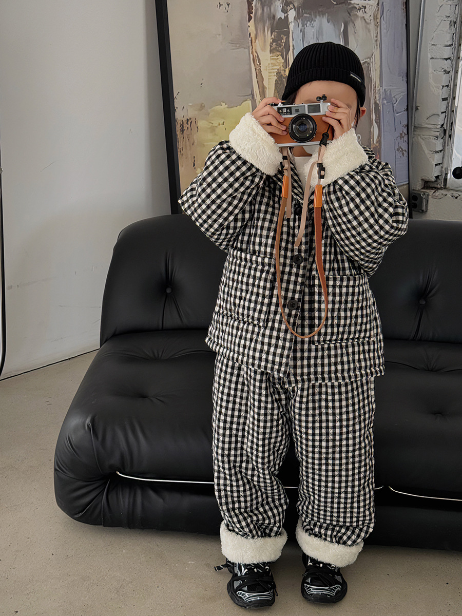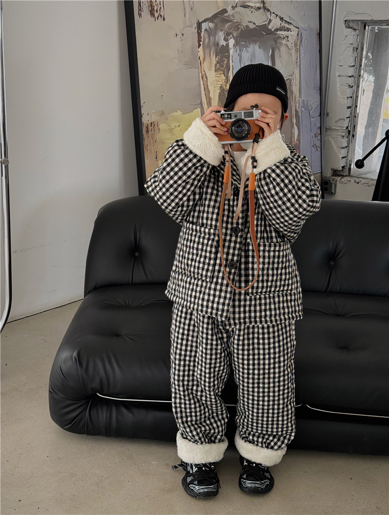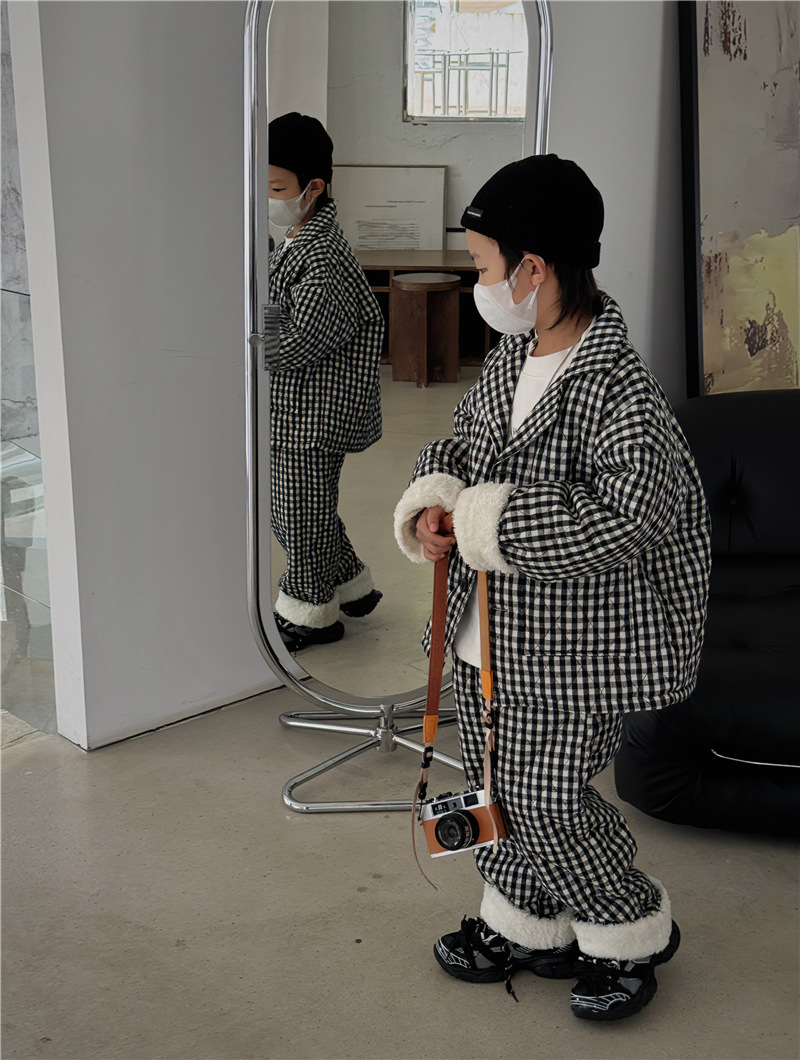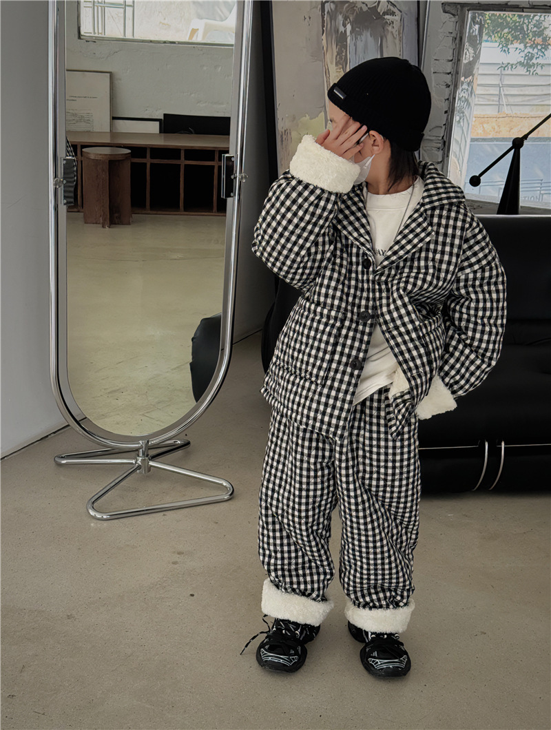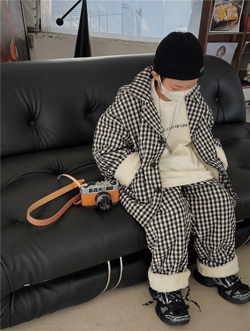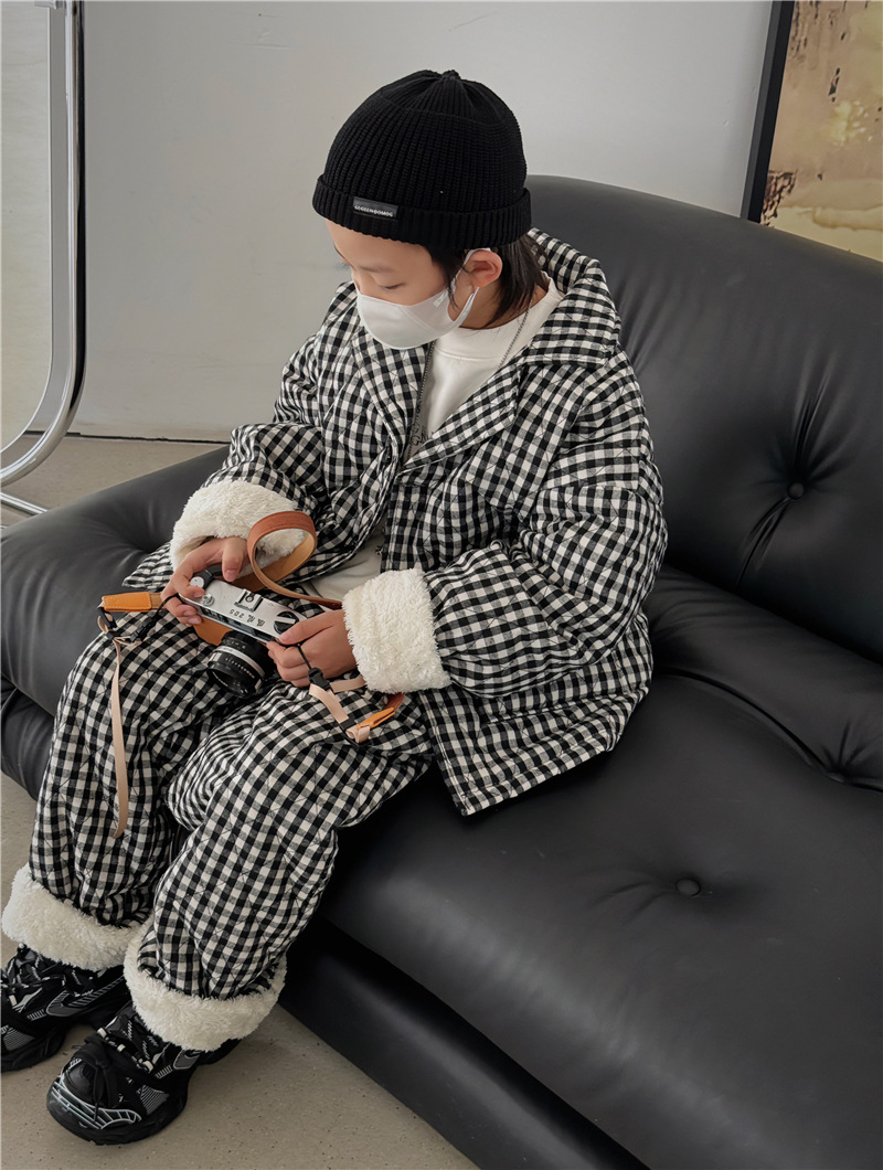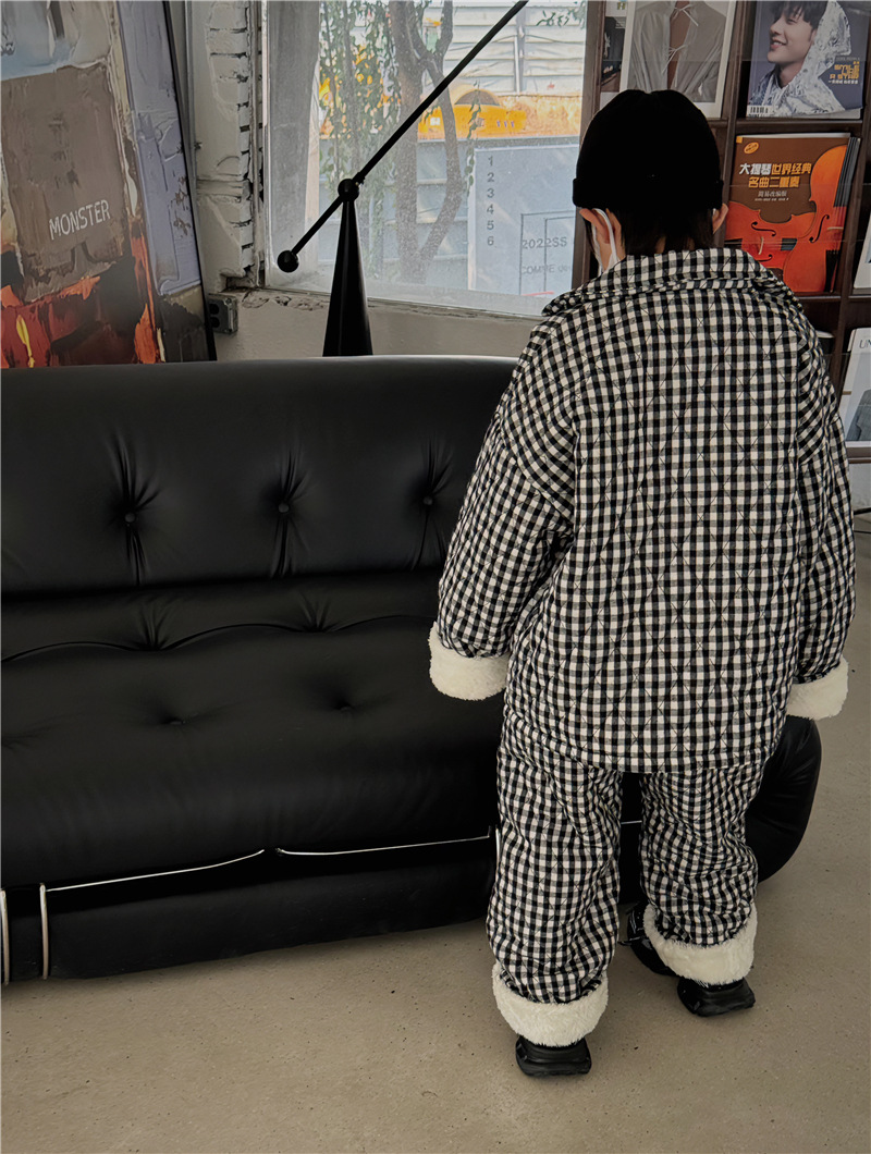 Baoduo 아동복 소년 잠옷 세트 가을과 겨울 어린이 기모 두꺼운 가정 의류 2023 새로운 소년 패션 브랜드스토어 가기