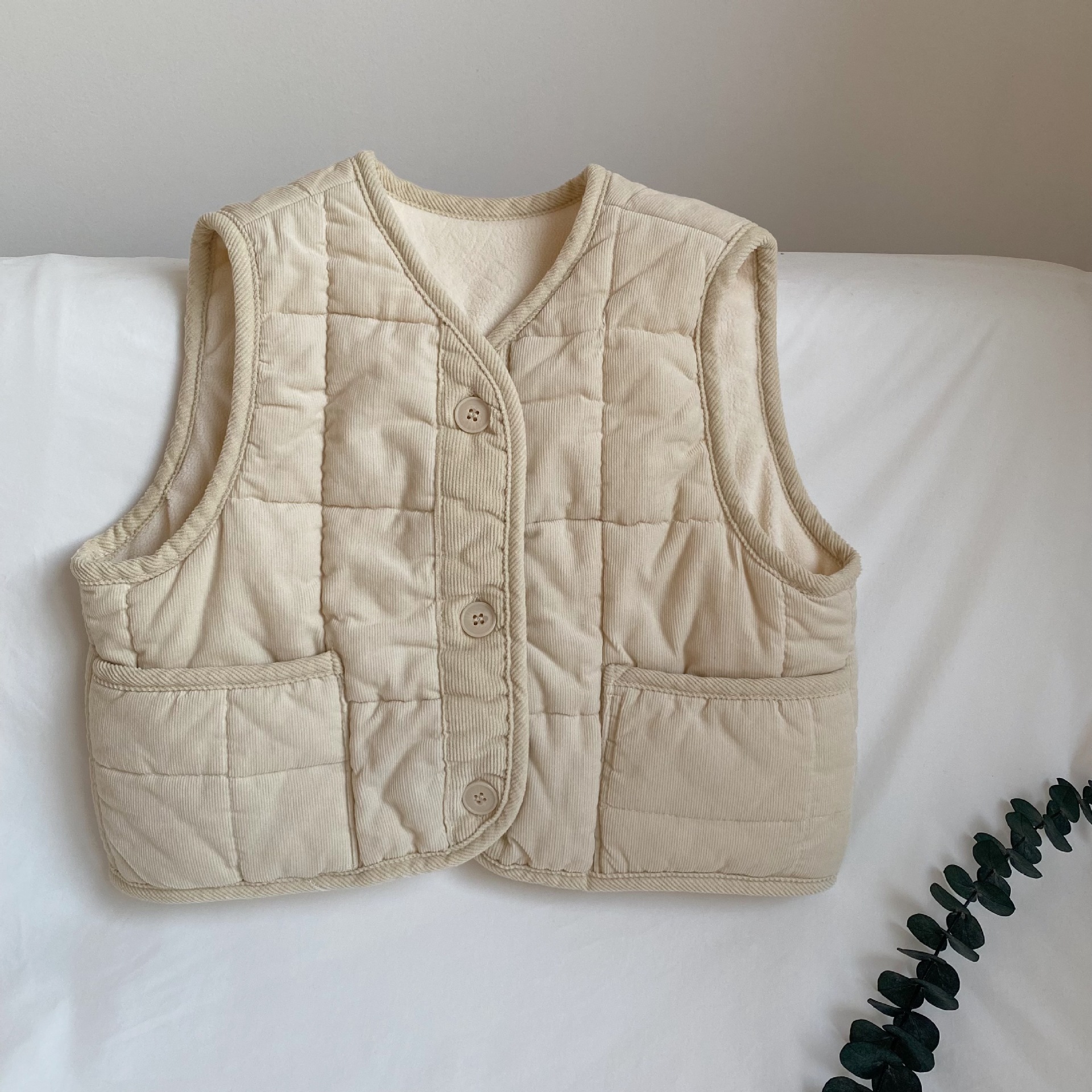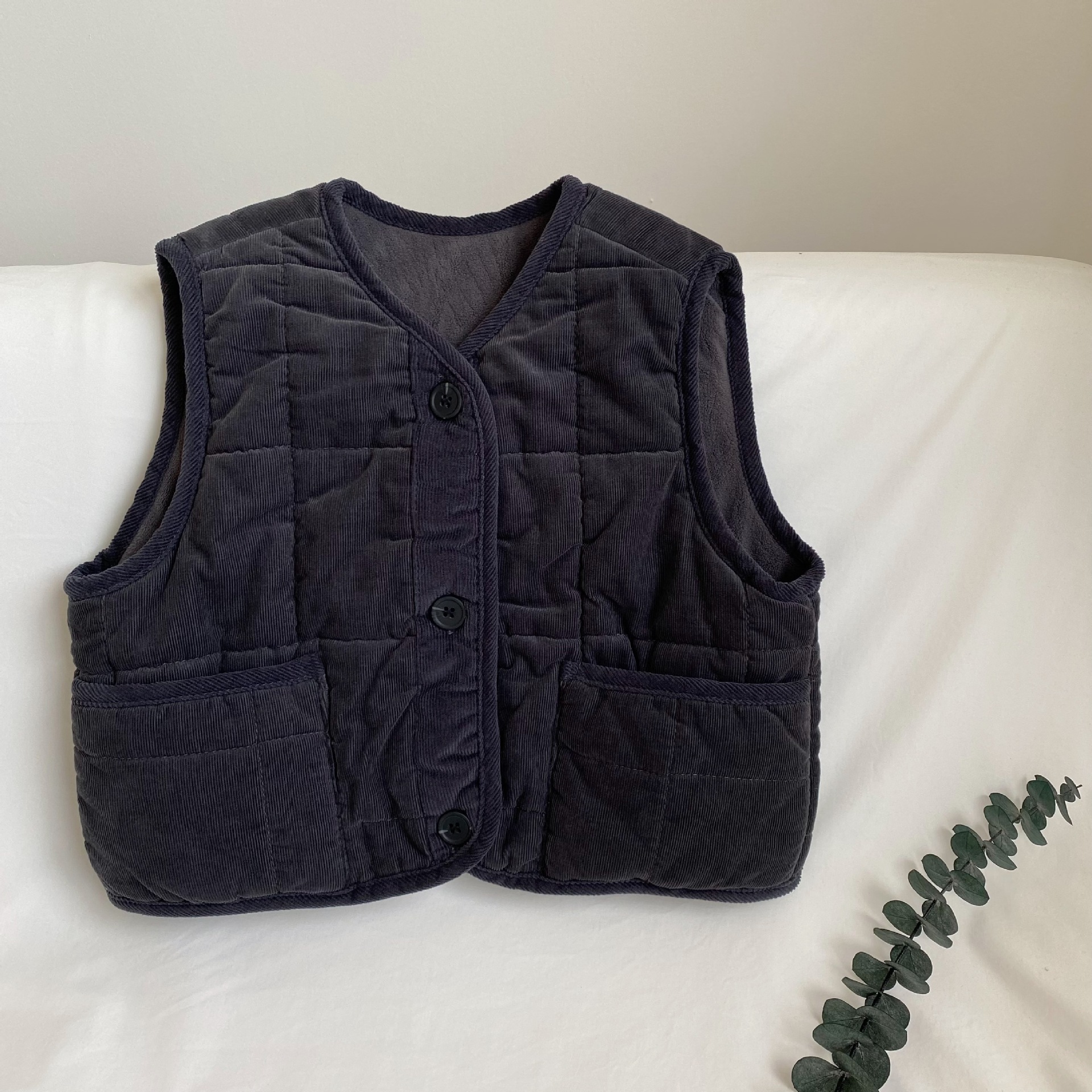 겨울 새로운 어린이 복고풍 한국 스타일 민소매 빵 조끼 남성과 여성의 따뜻한 코듀로이 포켓 재킷