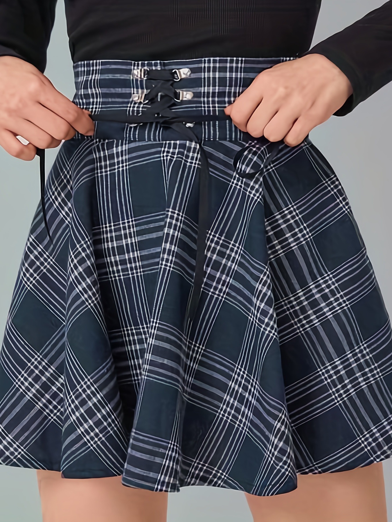 크로스 보더 유럽과 미국 짧은 치마 해외 무역 패션 캐주얼 슬림 하이 웨이스트 체크 무늬 인쇄 A 라인 스커트