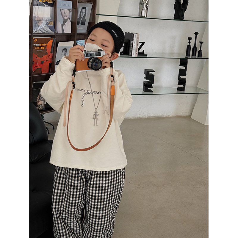 Baoduo 아동복 소년 가을과 겨울 긴 소매 티셔츠 2023 새로운 아동복 기모 스웨터 기본 셔츠 느슨한 서양 스타일스토어 가기