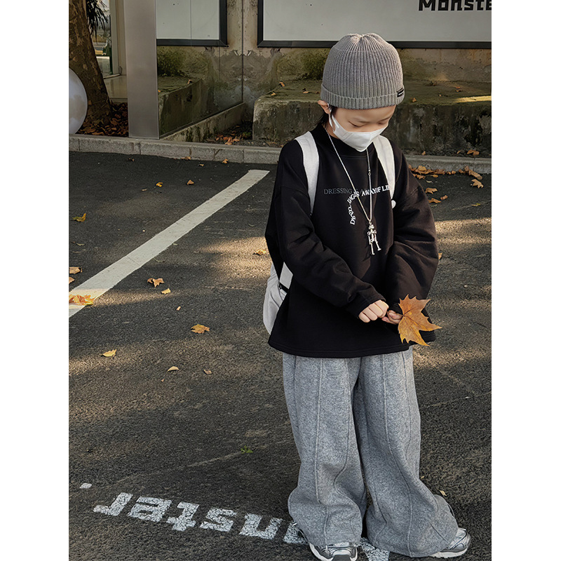 바오두 아동복 남아 가을 겨울 긴팔 티셔츠 2023 신상 아동복 독일산 벨벳 스웨트셔츠 이너웨어 루즈핏 스타일리쉬스토어 가기