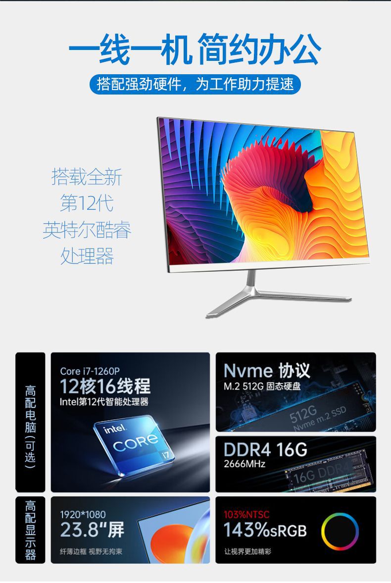 亚马逊外贸跨境电商出口国外19寸21寸23寸商用办公一体机电脑 台式一体机电脑整机 Commercial office all-in-one computer Desktop computer Amazon Foreign Trade Cross border E-commerce
