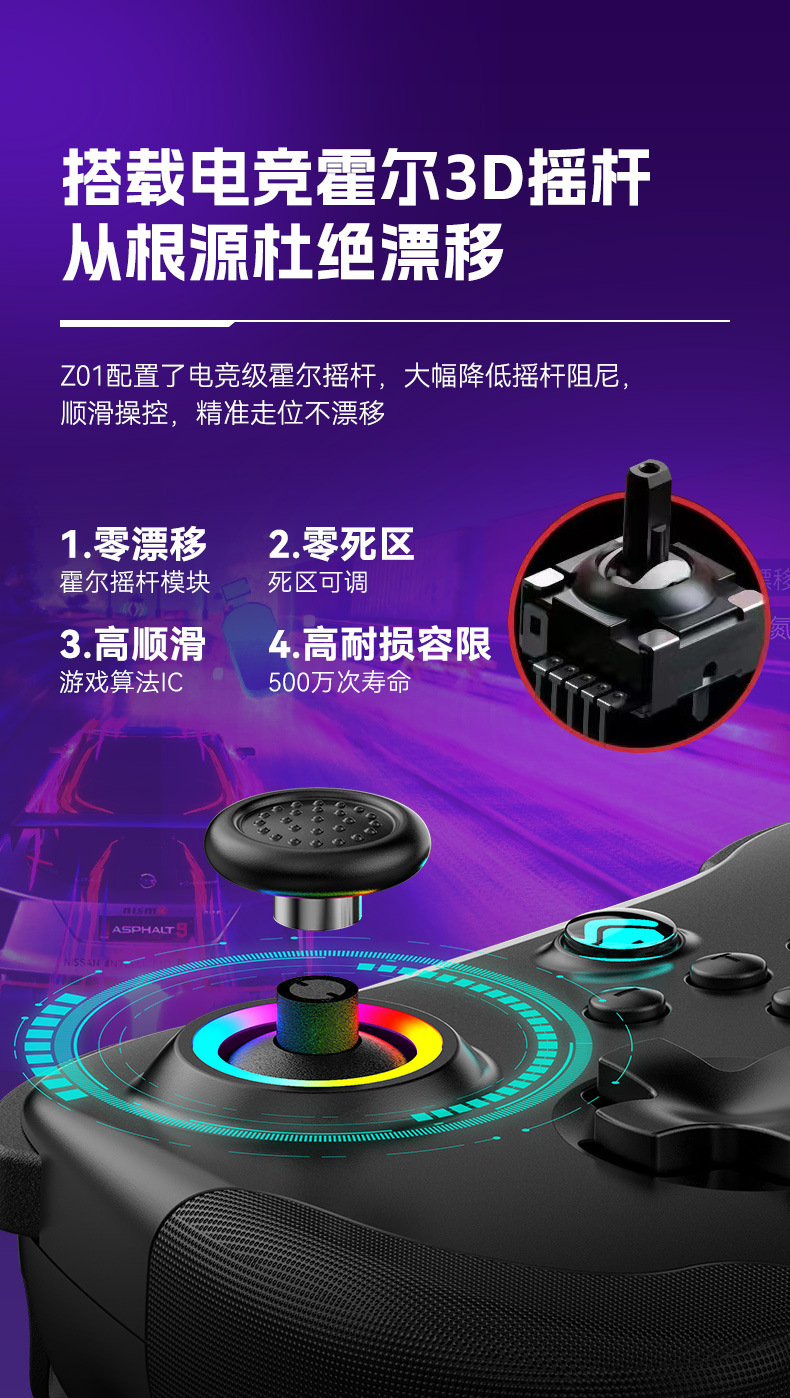 2、配置了电竞级霍尔3D摇杆、霍尔扳机;