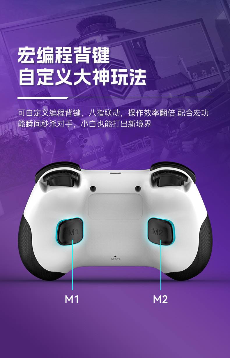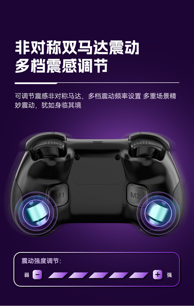 4、支持TURBO连发、宏编程、非对称双马达震动、六轴体感;