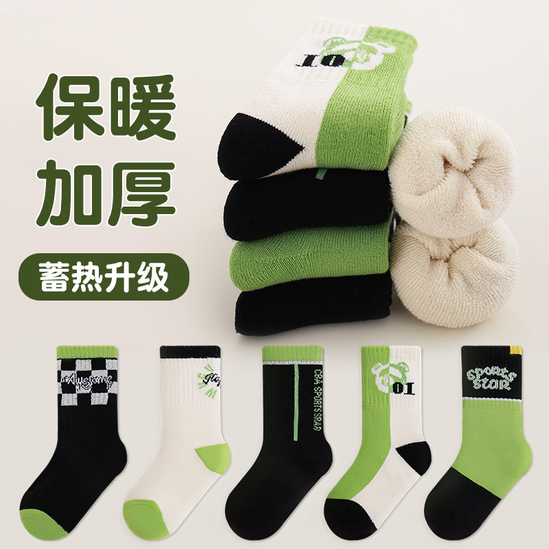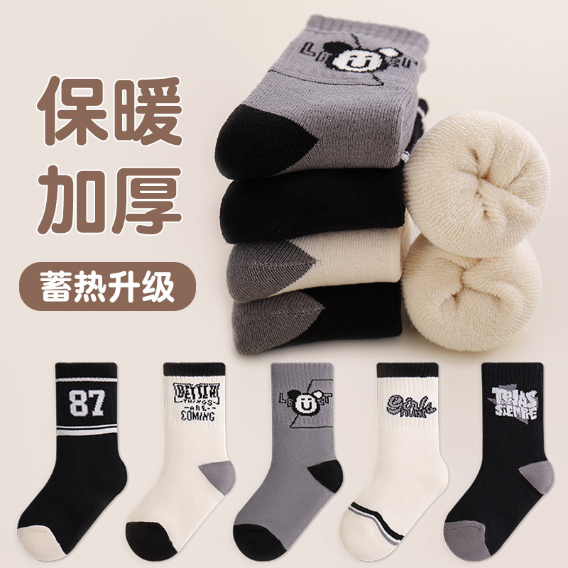 어린이 양말 가을 겨울 두꺼운 남아 여아 양말 만화 캐릭터 긴 중목 양말 따뜻한 테리 양말 도매