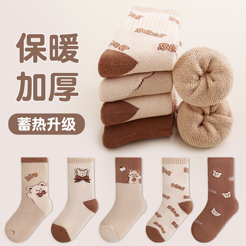 어린이 양말 가을 겨울 두꺼운 남아 여아 양말 만화 캐릭터 긴 중목 양말 따뜻한 테리 양말 도매스토어 가기