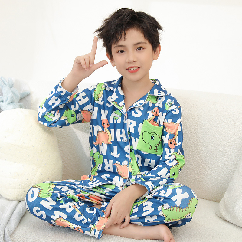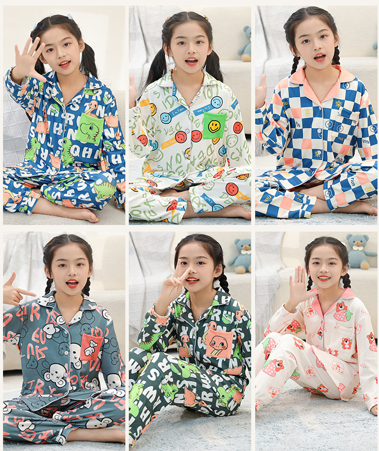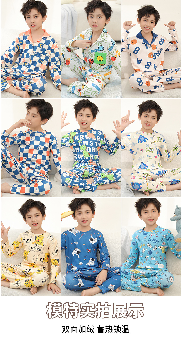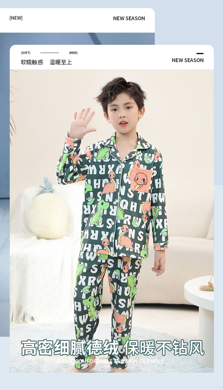 가을과 겨울 소년과 소녀의 중간 및 큰 어린이 잠옷 두꺼운 가을 옷과 바지 가정 옷을 세트 어린이 벨벳 열 속옷스토어 가기