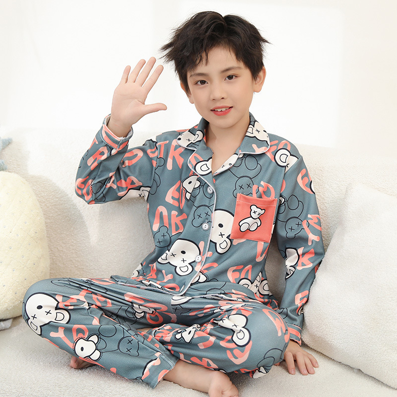 가을과 겨울 소년과 소녀의 중간 및 큰 어린이 잠옷 두꺼운 가을 옷과 바지 가정 옷을 세트 어린이 벨벳 열 속옷