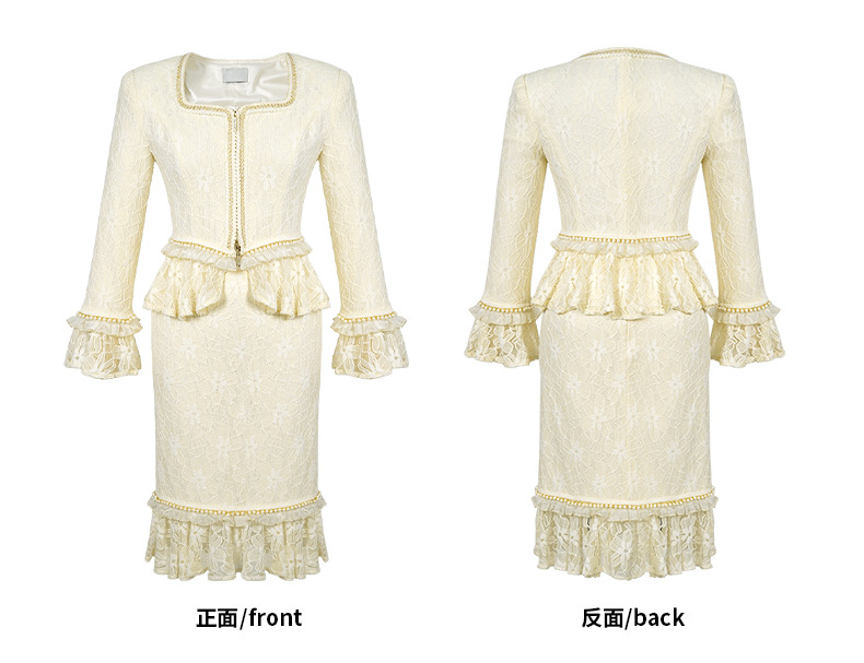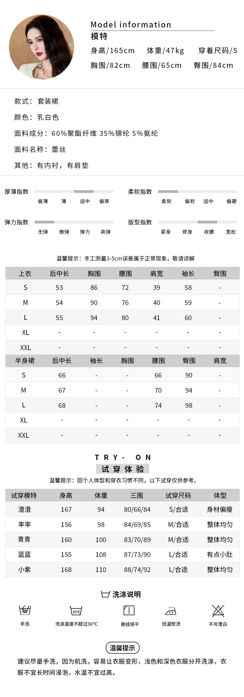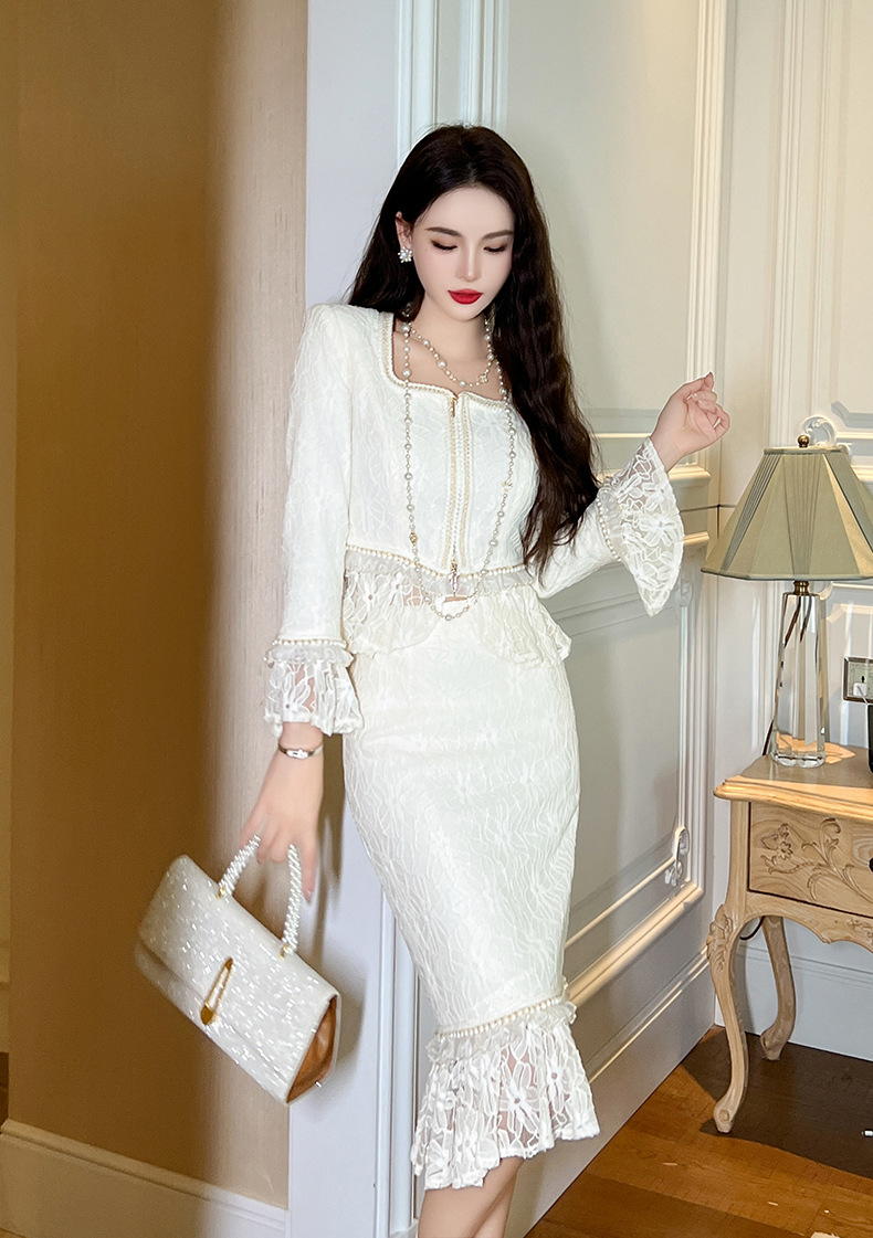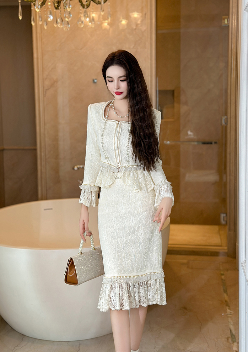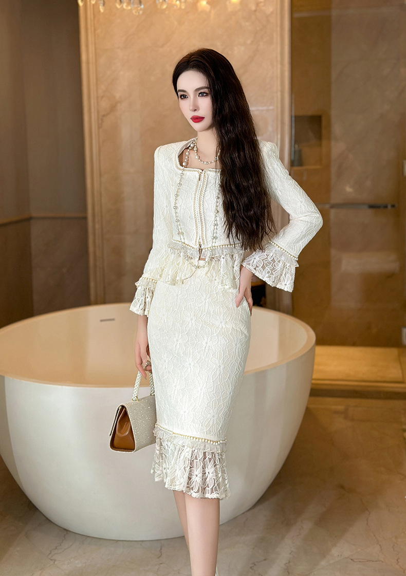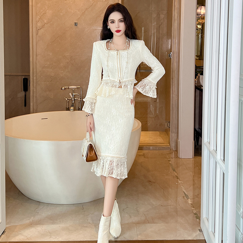 2025 가을 신상 여성용 작은 프랑스 스타일 디자인 레이스 탑과 힙을 감싸는 스커트 세트 20925스토어 가기
