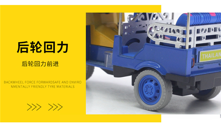 ③操作简单,把车车放在平面上,按住车车往后拖,松开手,车车就能向前跑了。