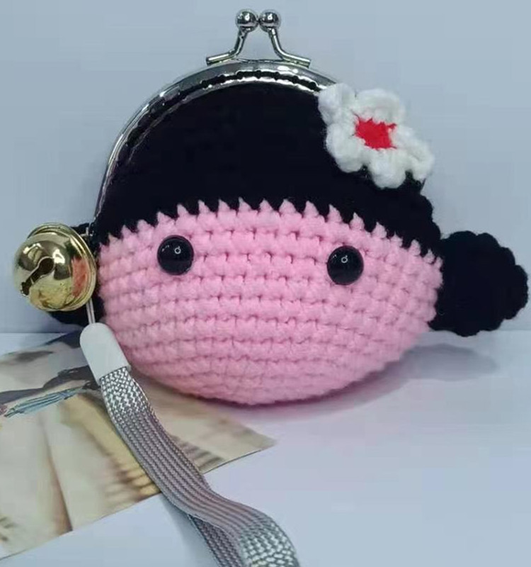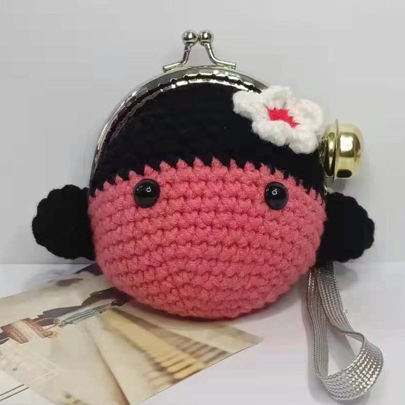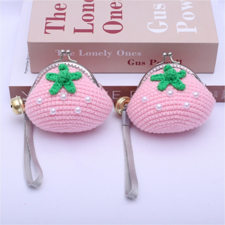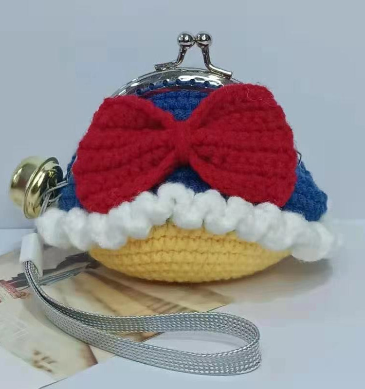수제 크로 셰 뜨개질 립 골드 백 완성 된 크로 셰 뜨개질 가방 공급 양모 짠 귀여운 수제 만화 립 골드 백