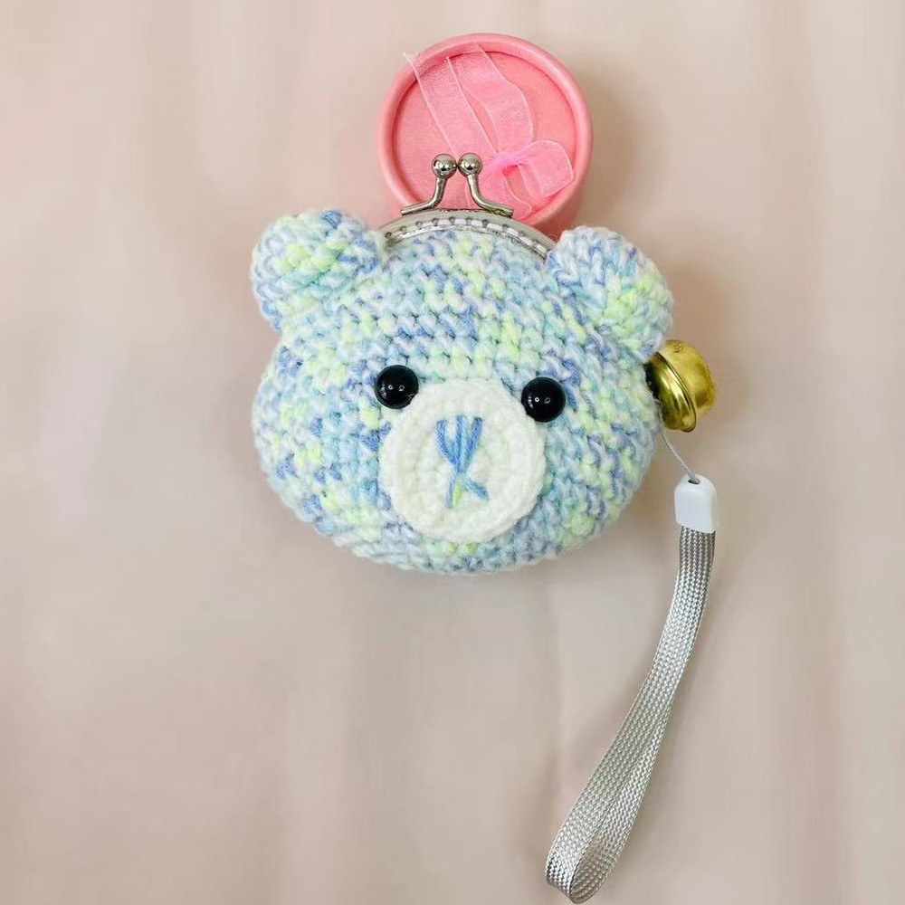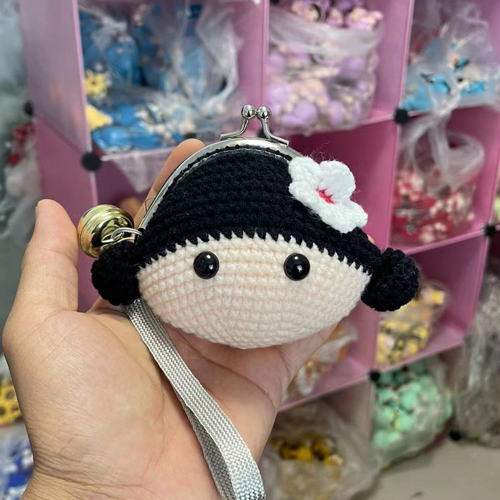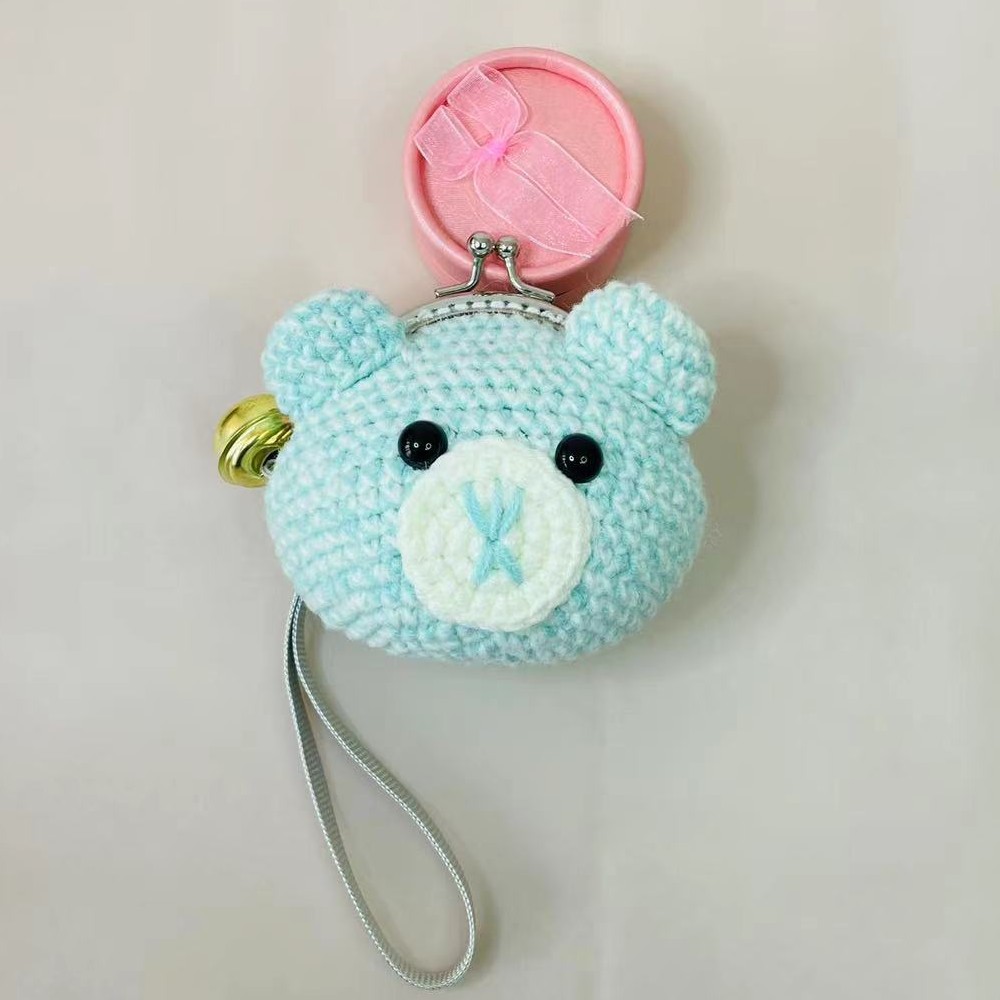 수제 크로 셰 뜨개질 립 골드 백 완성 된 크로 셰 뜨개질 가방 공급 양모 짠 귀여운 수제 만화 립 골드 백스토어 가기