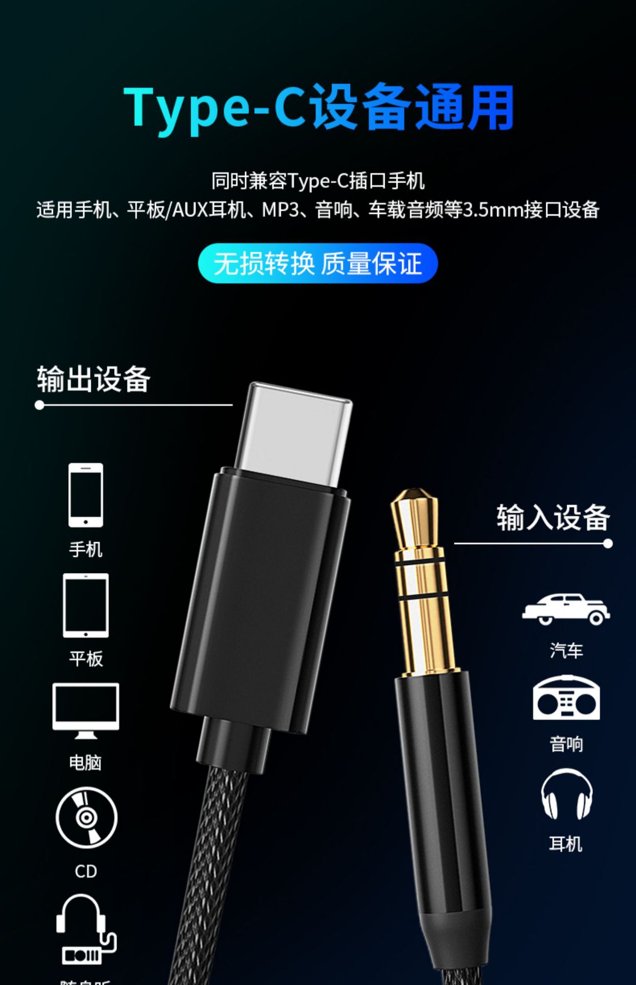 유형-c에 적용 가능 3.5mm 자동차 오디오 라인 AUX 안드로이드 애플 휴대 전화 녹음 라인에 디지털 전송