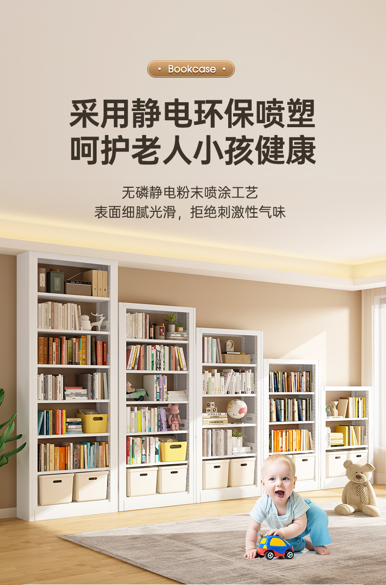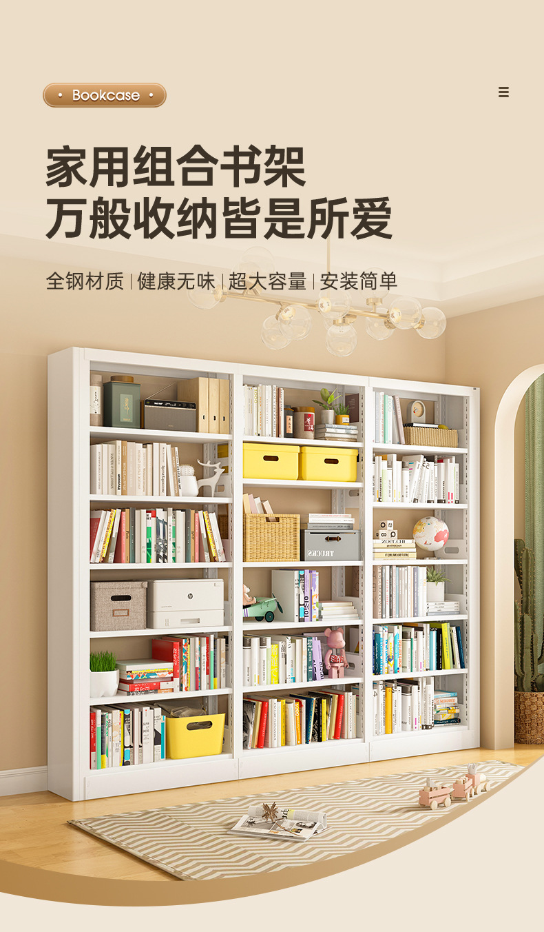 가정용 스틸 책장 바닥 보관 랙 도서관 독서 랙 거실 철제 책꽂이 어린이 다층 책장