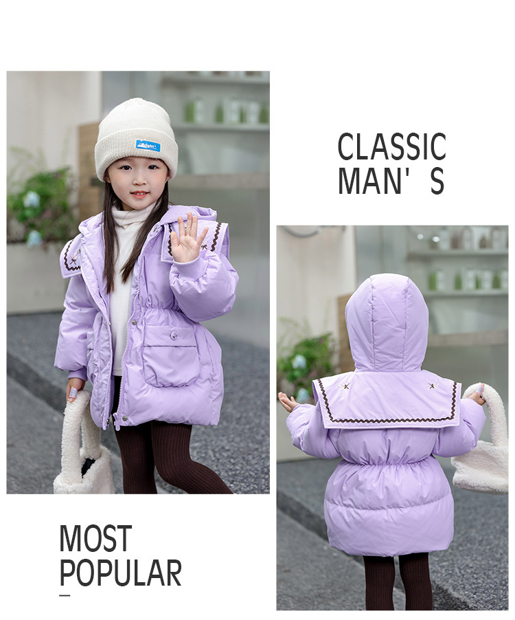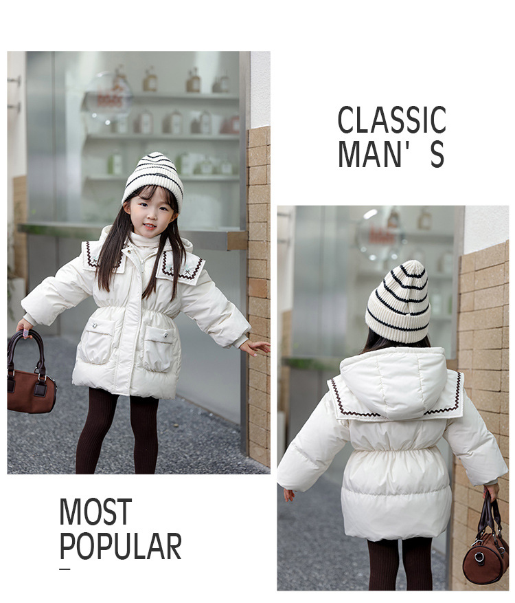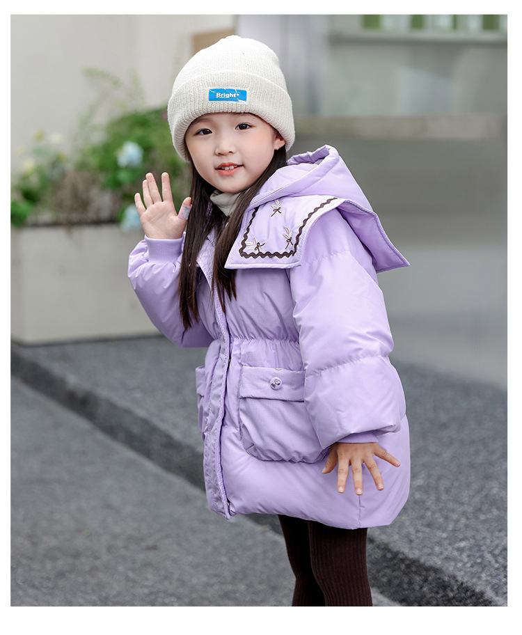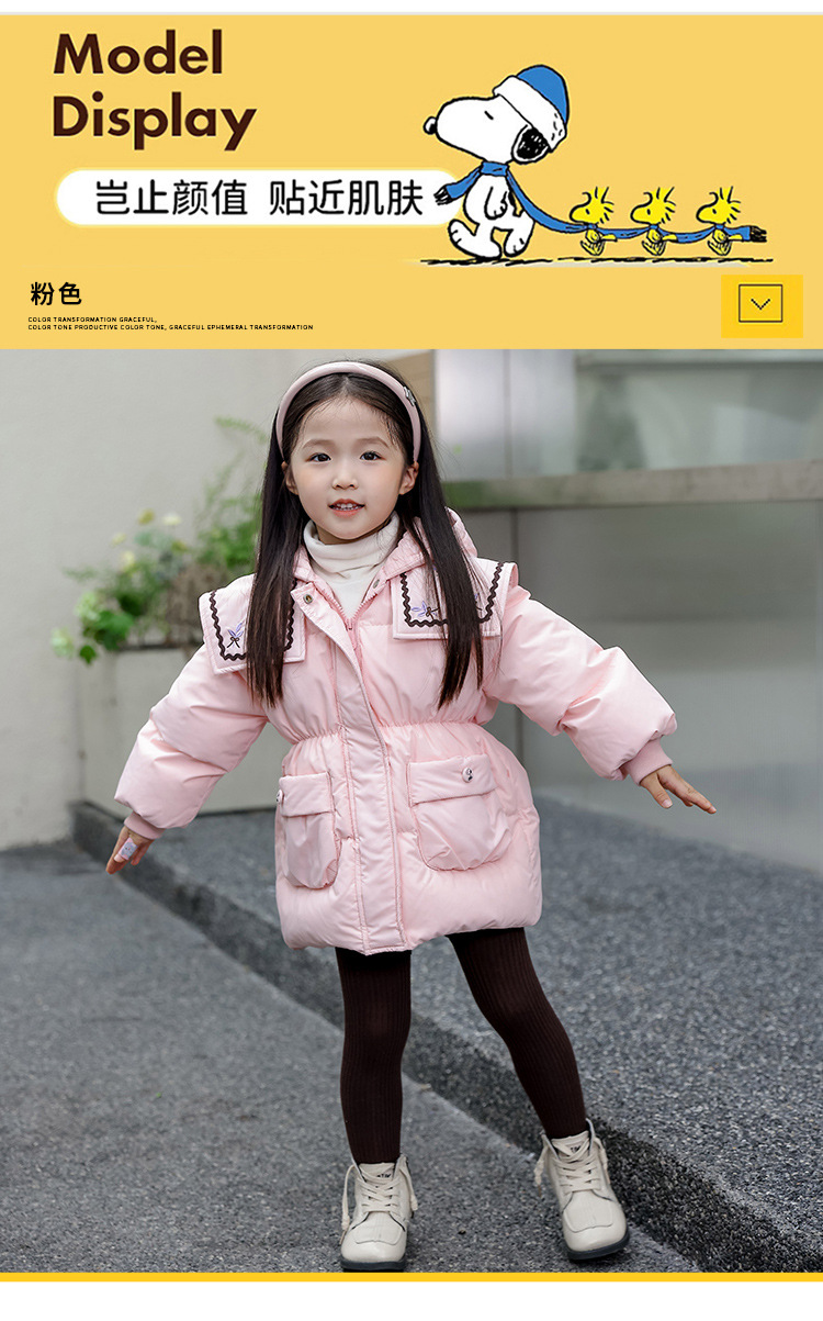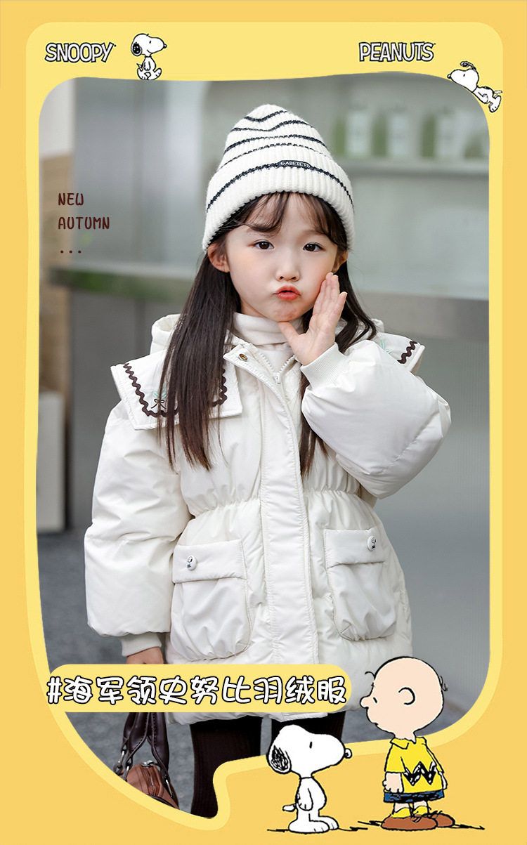 스누피 걸스 중간 길이 네이비 칼라 다운 재킷 코트 HL-23158HBAIS1스토어 가기