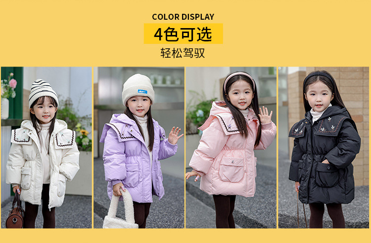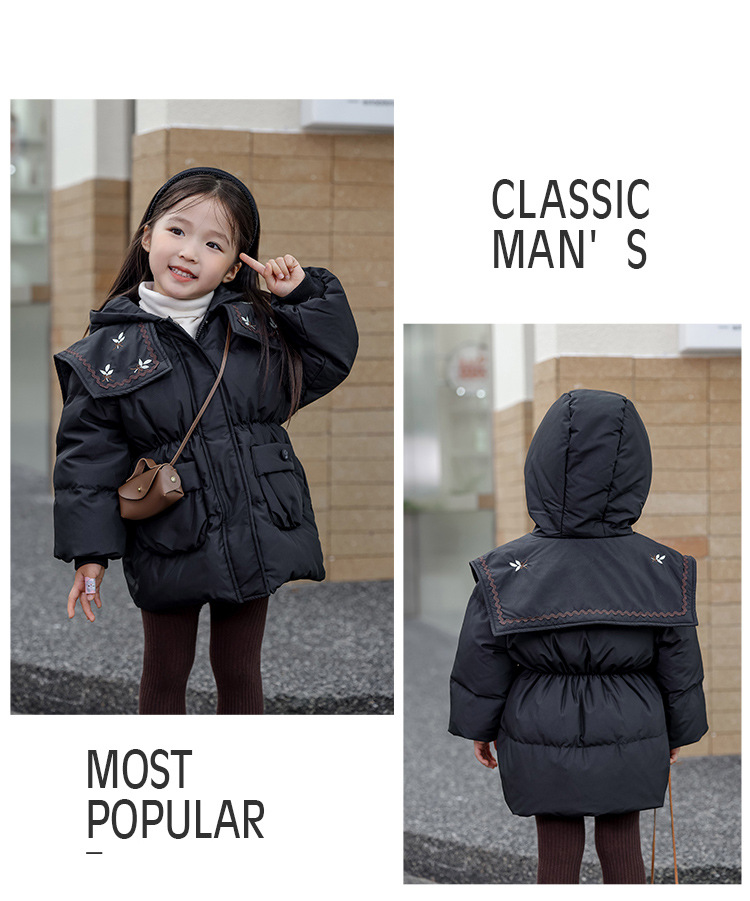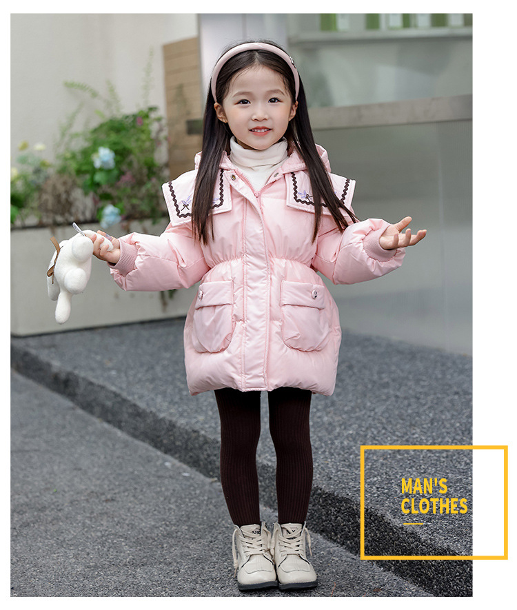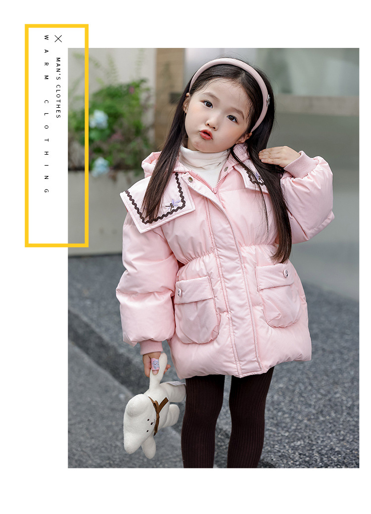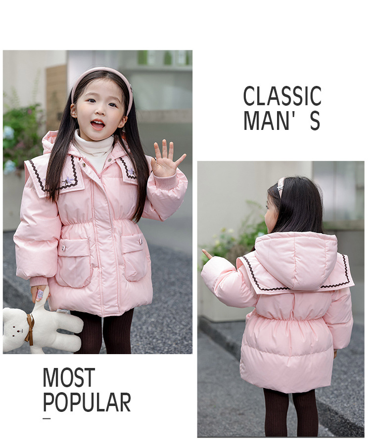 스누피 걸스 중간 길이 네이비 칼라 다운 재킷 코트 HL-23158HBAIS1스토어 가기