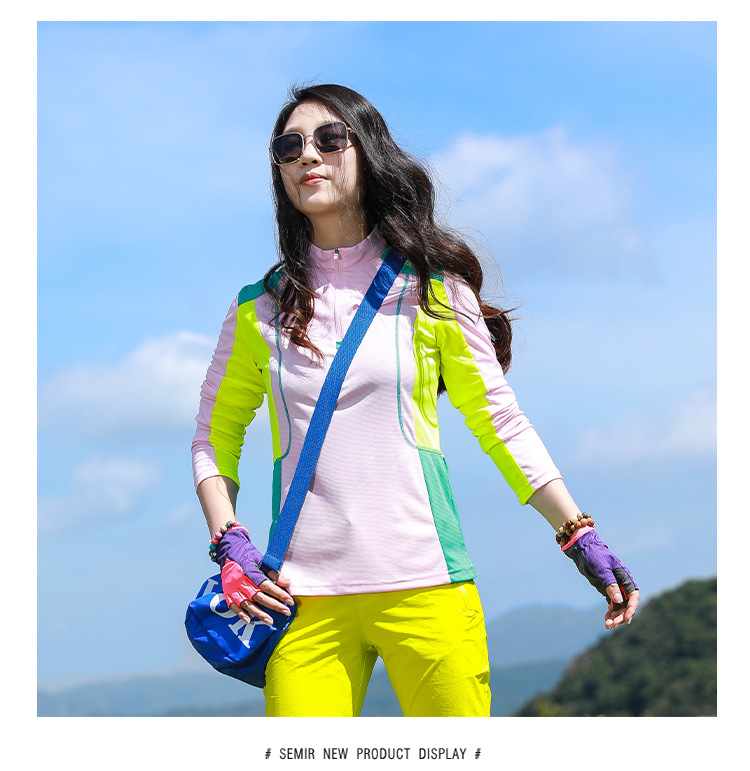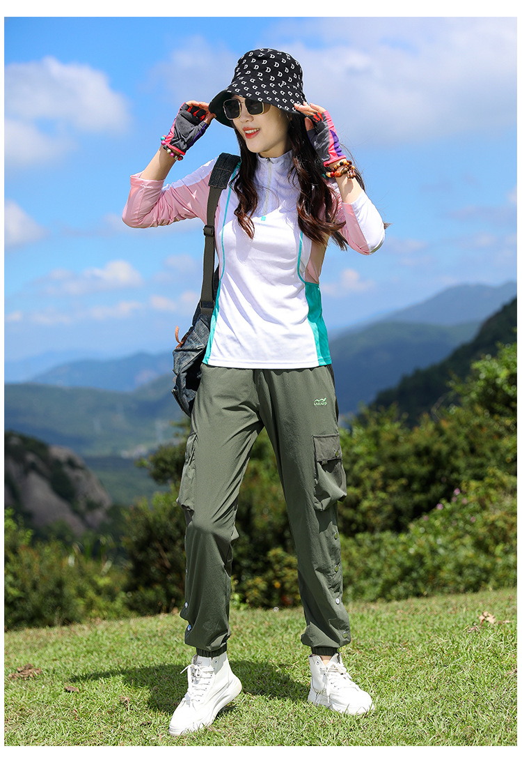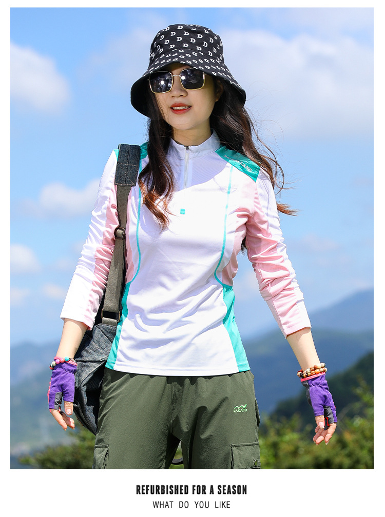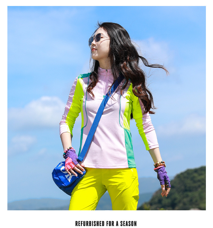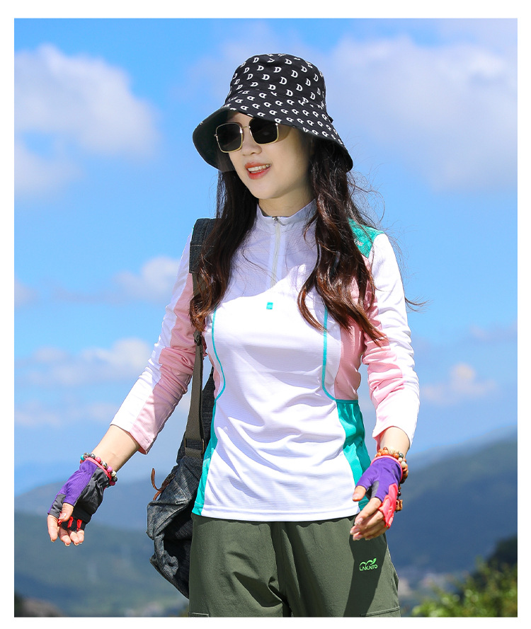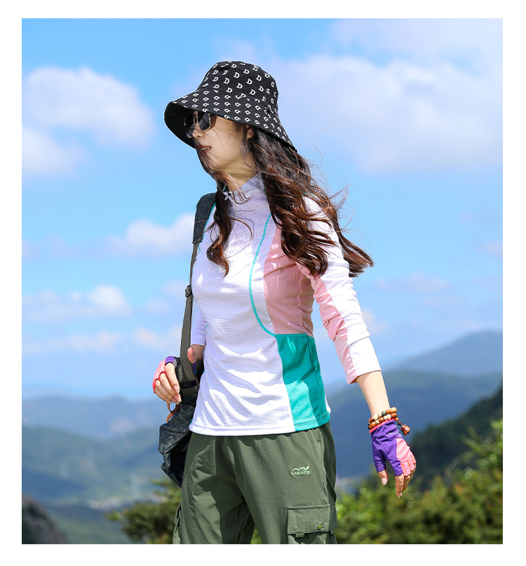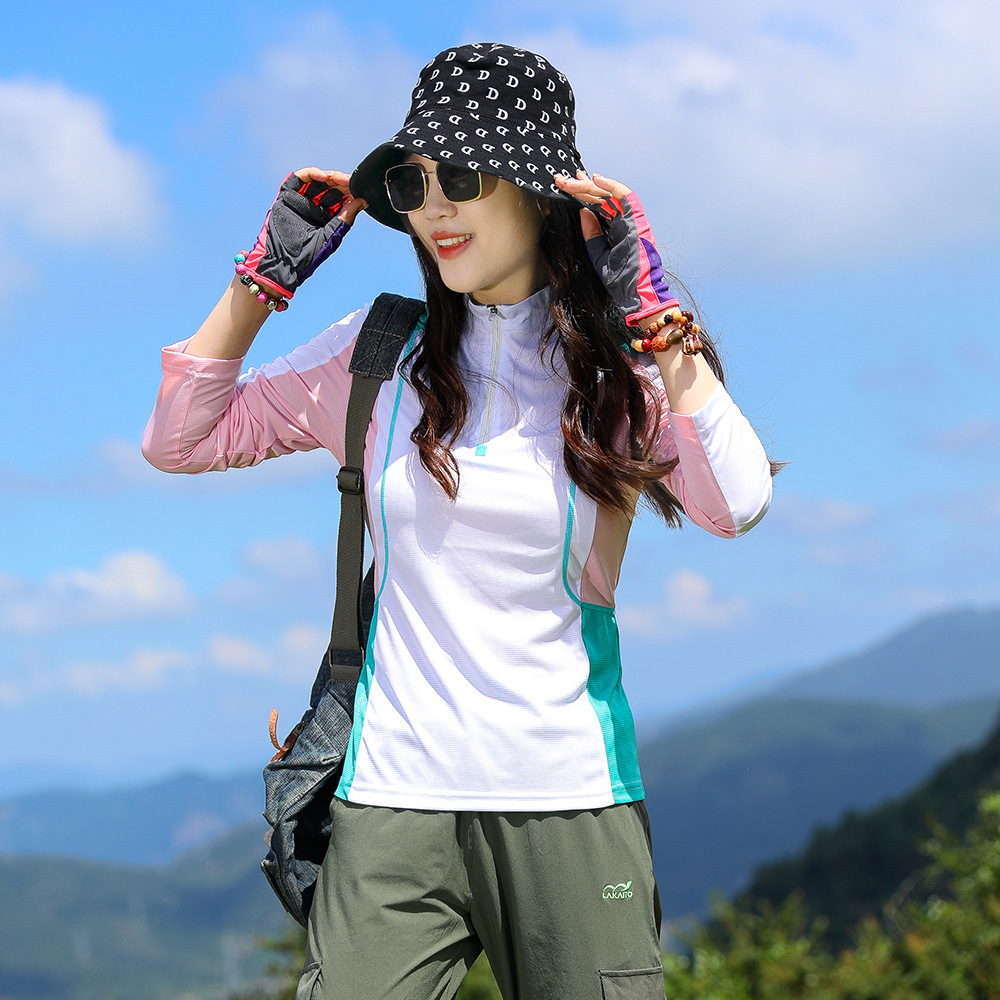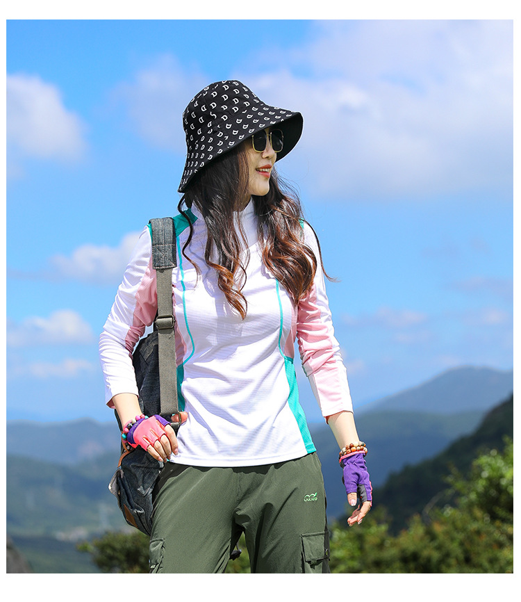 야외 자외선 차단제 속건성 의류 여성용 긴팔 티셔츠 여성용 경량 통기성 속건성 의류 달리기 탄성 스포츠 하이킹 등산