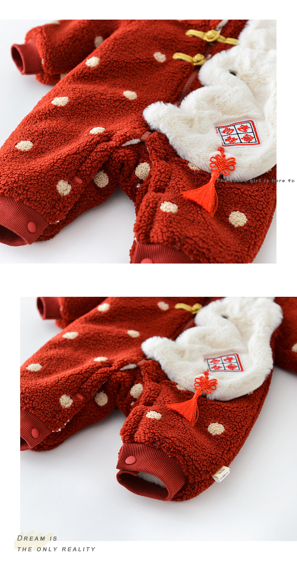 婴儿连体衣秋冬女宝宝加绒加厚毛毛爬服女童圆领一体绒打底上衣