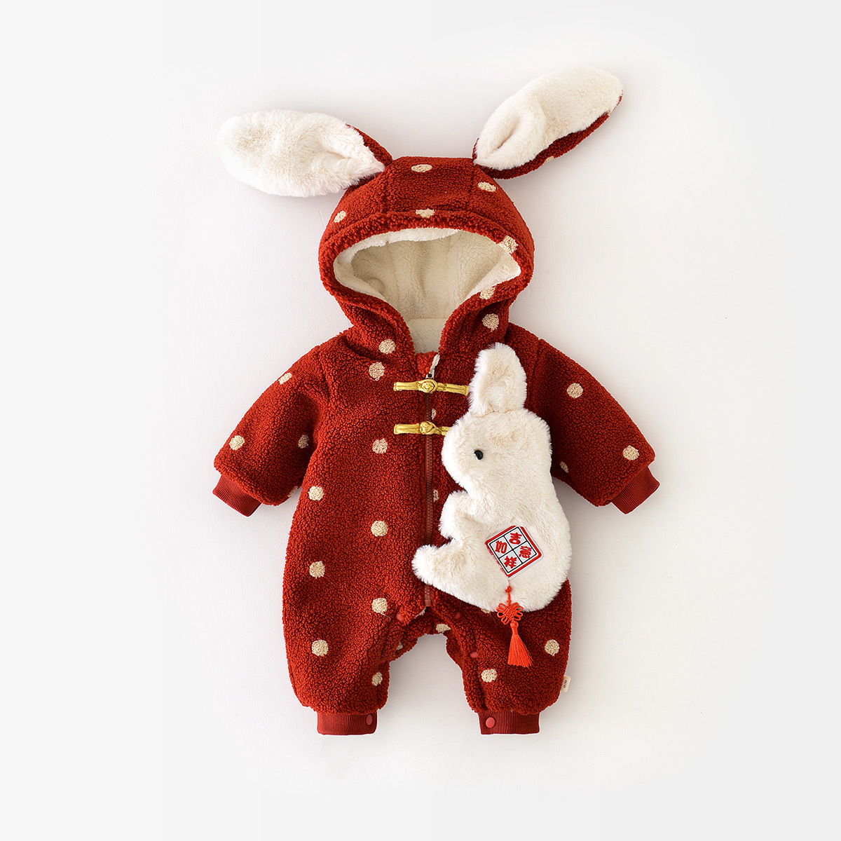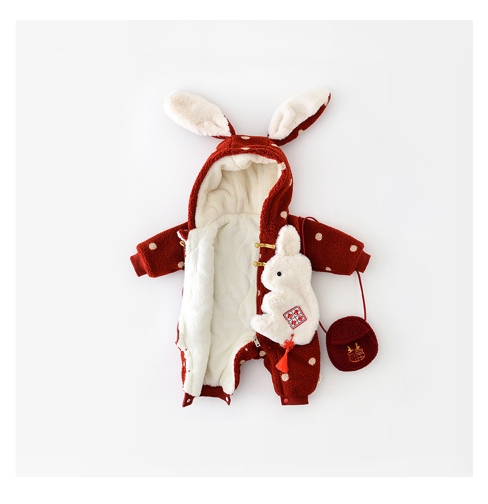 아기의 점프 슈트 겨울 옷 아기의 기모 버클 토끼 따뜻한 후드 코튼 패딩 코트 신생아의 외부 착용 등산 세트스토어 가기