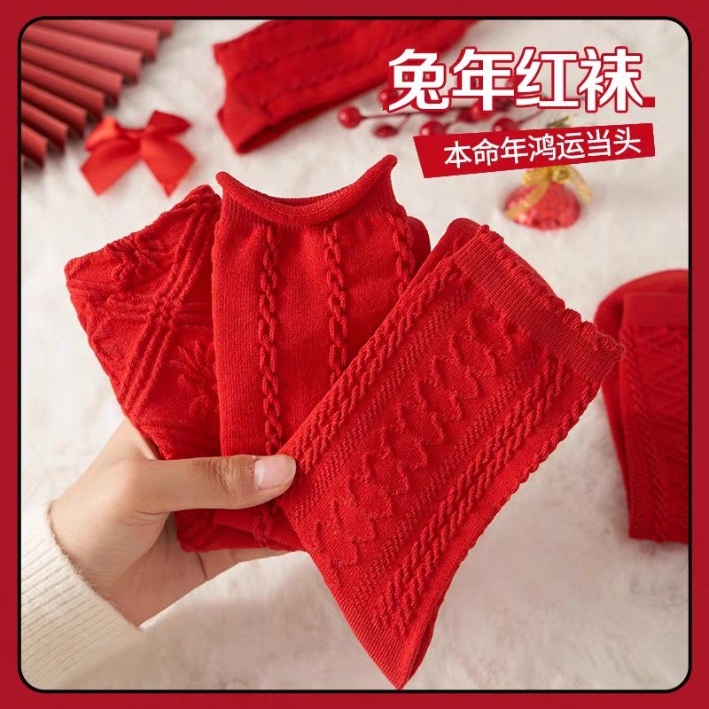 Benmingnian 양말 여자의 중간 길이 양말 가을과 겨울 면 새해 웨딩 양말 축제 단색 토끼 년 빨간 양말스토어 가기