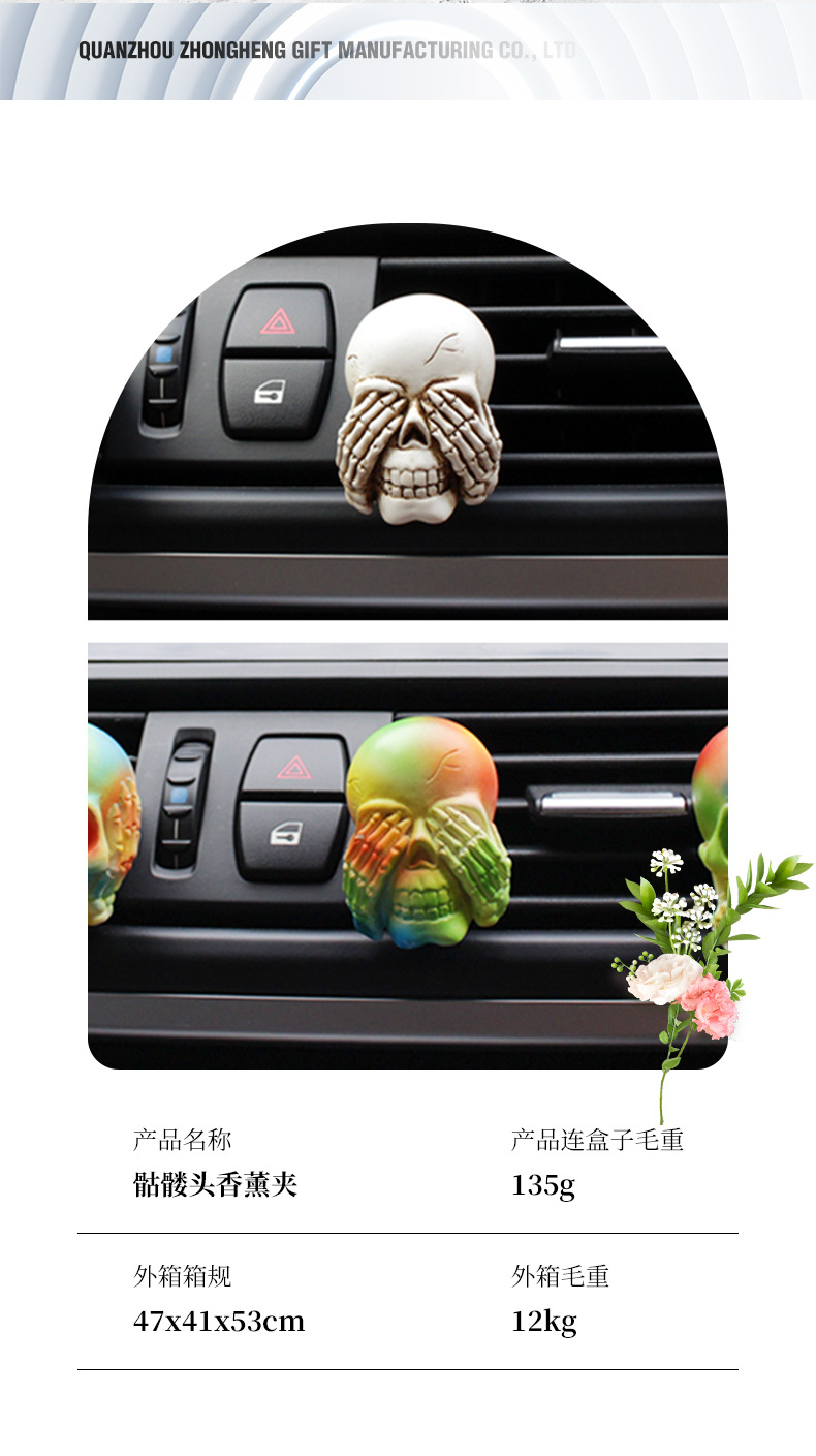수지 색 해골 아로마 테라피 클립 개인화 된 유령 머리 향기 클립 자동차 아로마 테라피 자동차 공기 배출구 향수 용품스토어 가기