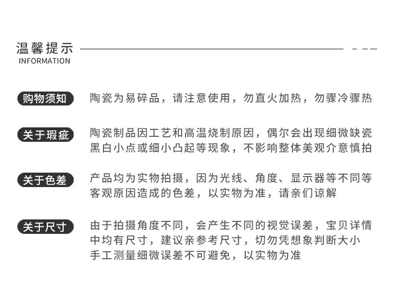 量大 联系客服 运费可更改下单请咨询 购买须知 1.产品报价为,品牌产品价格不稳定,库存,价格仅为参考,不含运费、税费,运费由买家承担,具体运费请咨询客服; 2.本公司所有产品均为实拍图,由于显示器等原因可能会造成一些色差,我们会尽量保持色彩一致; 3.产品存在少量瑕疵属于正常,部分产品不补破损,购买前请咨询客服; 关于发货 1.定制礼品一般需要2-3天才能做好发货,具体时间详询客服。整件货物以上一律通过物流公司托运的形式,运输到买家指定的城市,国内直达城市平均2-3天到,中转城市平均3-5天到; 3.因长途运输有时间和自然不可抗拒因素,请提前安排好时间下单,因时间耽误买方,本公司不承担责任; 2.无法确保提货地点离您位置很近;物流一般到市和县,不提供送货上门(如需送货上门,应加收物流送货费); 3.公司默认物流:京东、贰仟家、宇鑫、、金象、甲乙丙丁、方圆、正和、黑豹、豪祥、鸿泰、安能等(其他物流请联系客服); 售后服务 1.客户在收货之后发现产品有质量问题,请速与客服联系,洽谈更换或补发产品(如24小时内未联系客服,视为放弃); 1)如发现少发,错发商品,请您及时联系我们客服,我们将在时间复查配货发货流程,如确实是本公司原因,本公司将承担应有的责任。 2.产品运输过程中难免会有包装箱刮擦,磨损,我们尽量降到低,如果不能接受请勿下单。如果签收时发现破损比较严重,请勿签收,及时联系客服,一经签收我们将无法找运输公司索赔,后果自行承担。 3.货物发出之前我们会进行严格的质量把关,但产品之间的刮擦在所难免,在出库与物流运输期间可能会有正常的轻微刮擦,我们在尽量规避的时候也希望得到您的理解