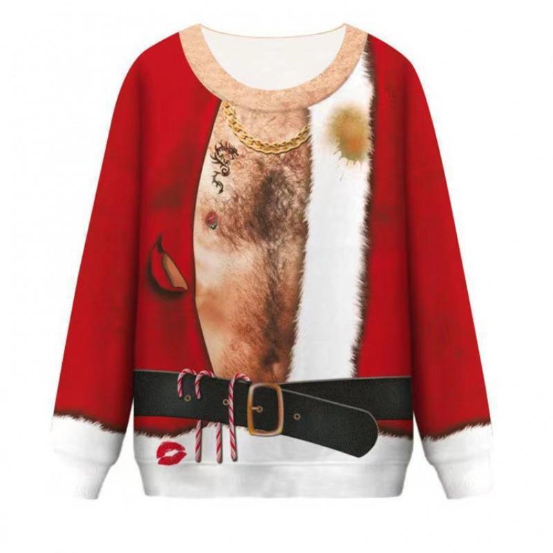 유럽과 미국 국경 독립 역 크리스마스 3D 디지털 인쇄 가슴 머리 재미있는 패턴 둥근 목 남성 스웨터 공장 스트레이트스토어 가기