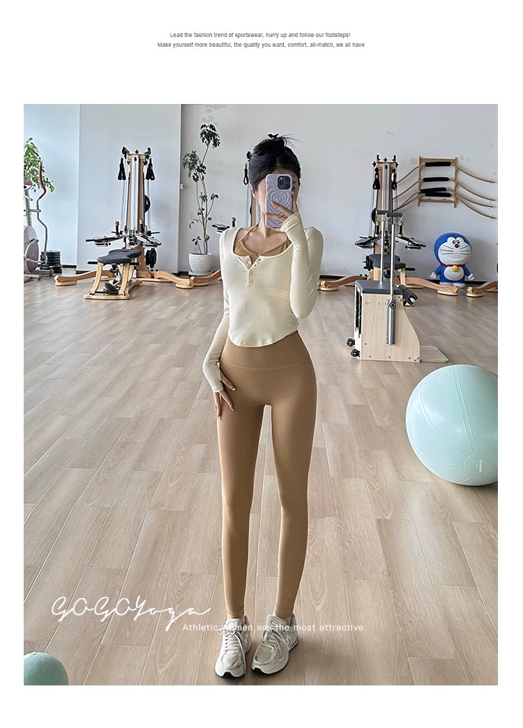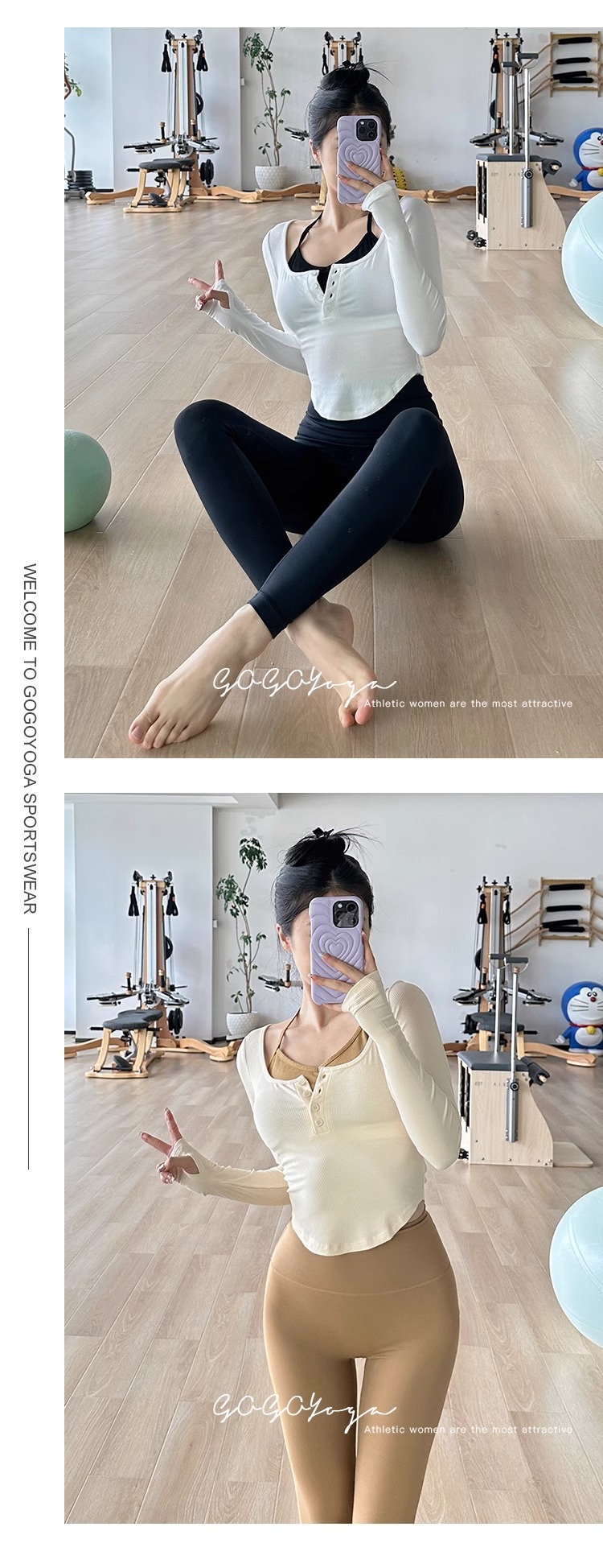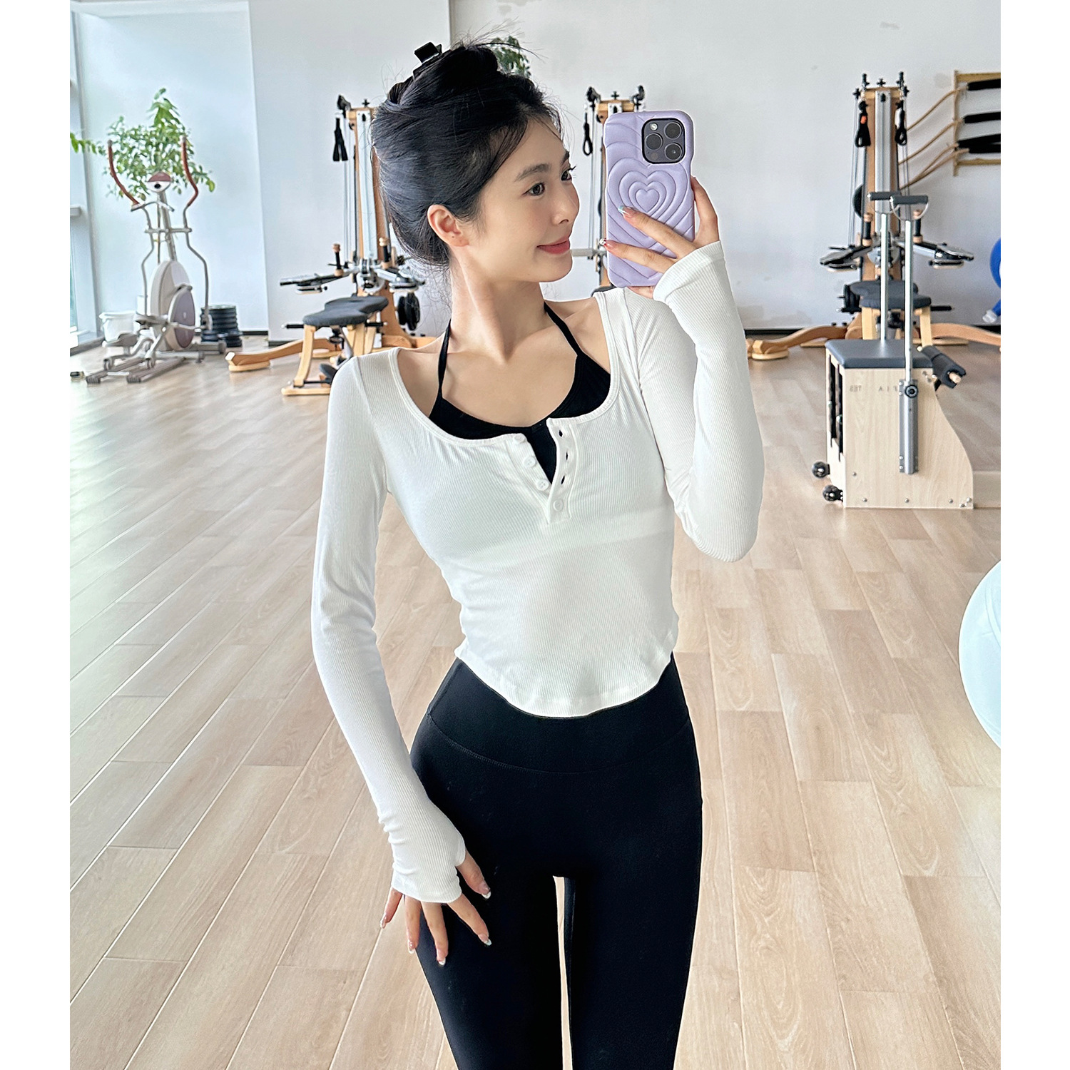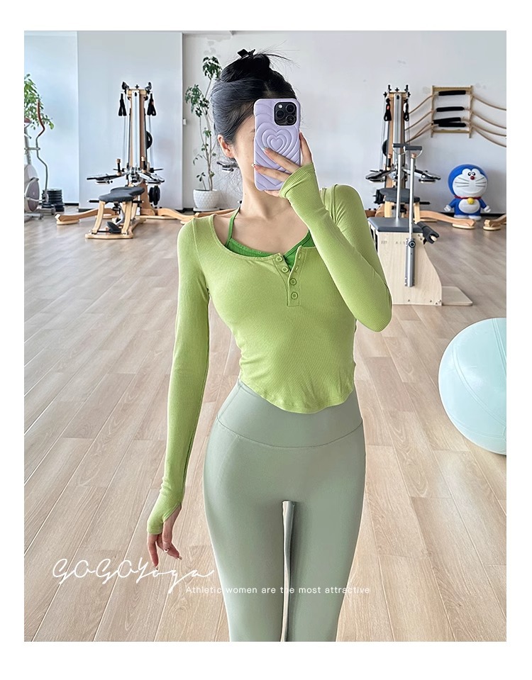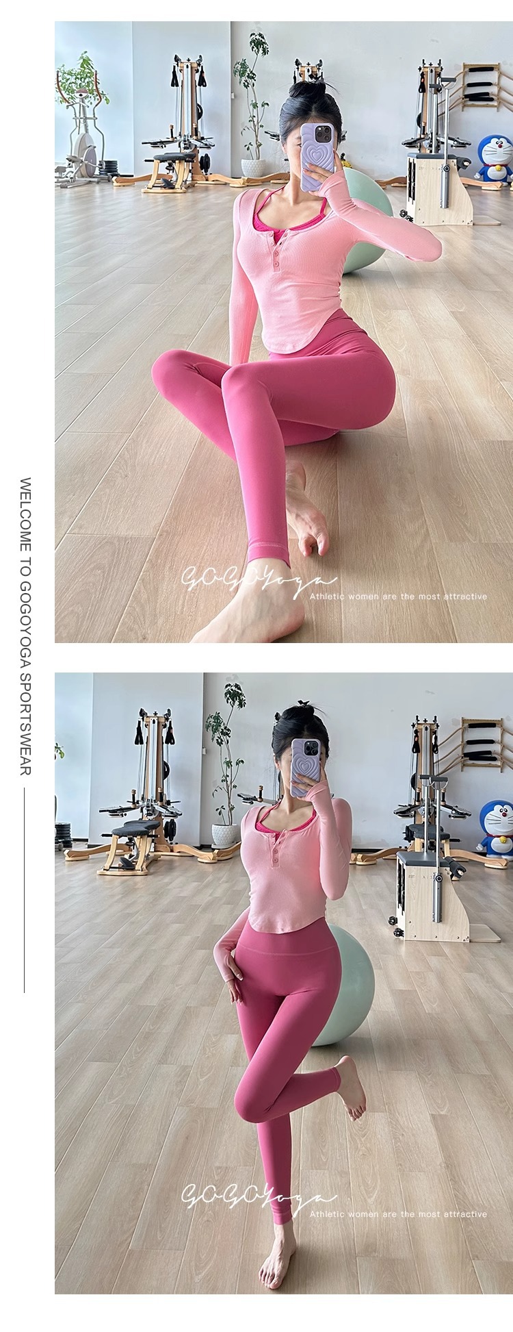 요가 세트 여성의 봄과 가을 스포츠 탑 가짜 투피스 러닝 긴팔 전문 필라테 훈련 가슴 패드로 피트니스 세트