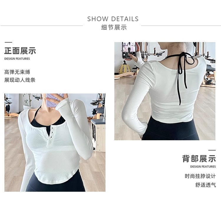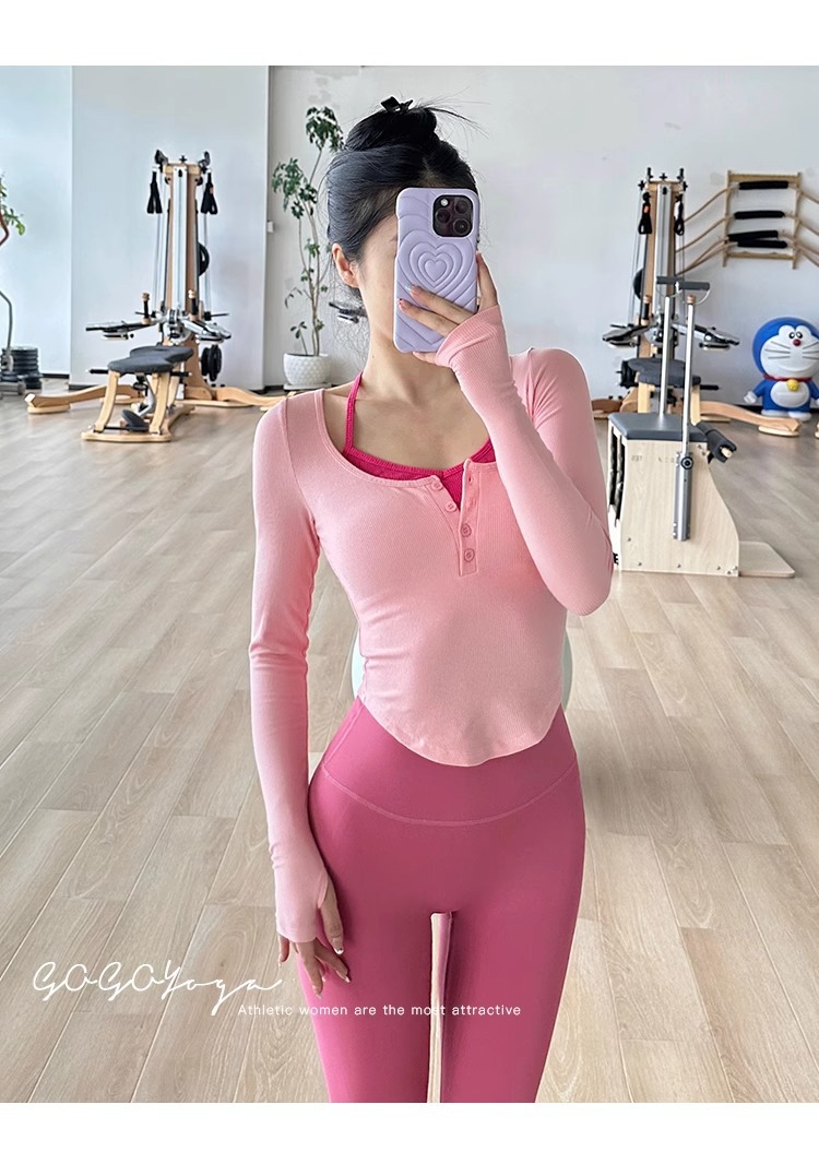 요가 세트 여성의 봄과 가을 스포츠 탑 가짜 투피스 러닝 긴팔 전문 필라테 훈련 가슴 패드로 피트니스 세트스토어 가기