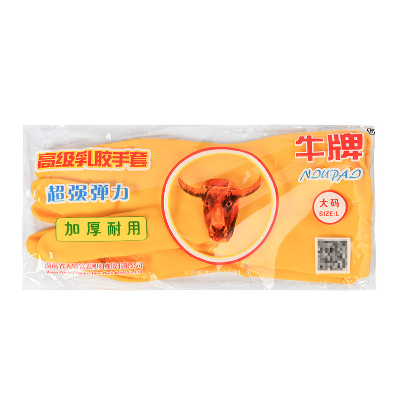 두꺼운 암소 브랜드 고무 장갑 라텍스 가죽 세탁 식기 주방 세탁 청소 쇠고기 힘줄 방수 미끄럼 방지 작업 가사스토어 가기