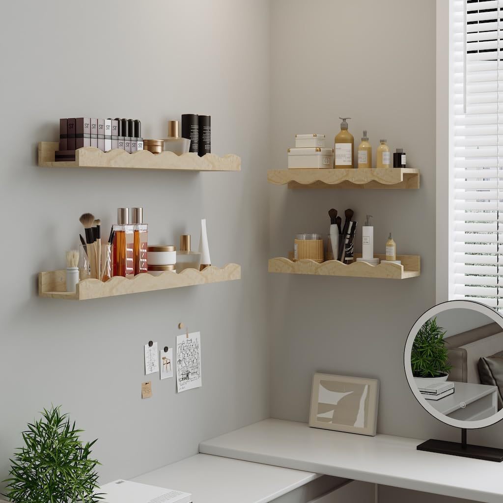 떠 다니는 책장 2 조각 욕실 선반 화장실 나무 보관 랙 장식 책 장난감 벽 랙