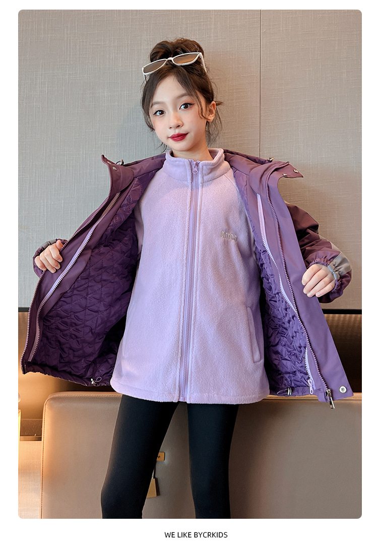 여아용 누빔 두꺼운 3-in-1 탈부착 가능 겨울 재킷 2025 신상 중대형 아동용 스타일리시 윈드브레이커스토어 가기