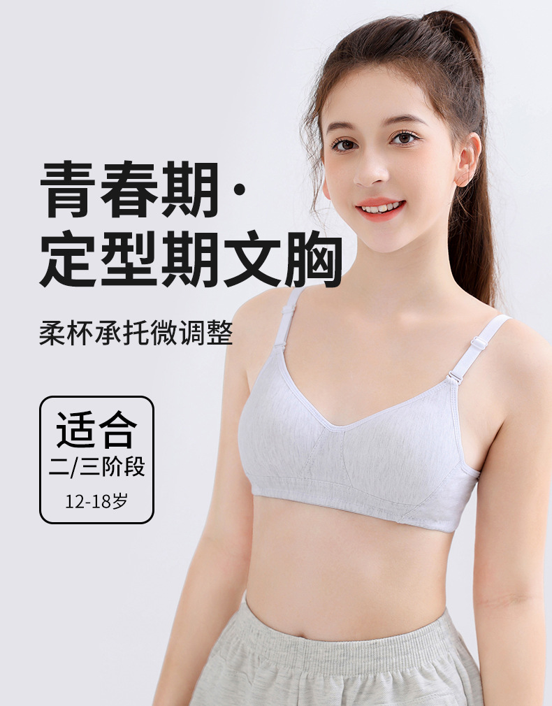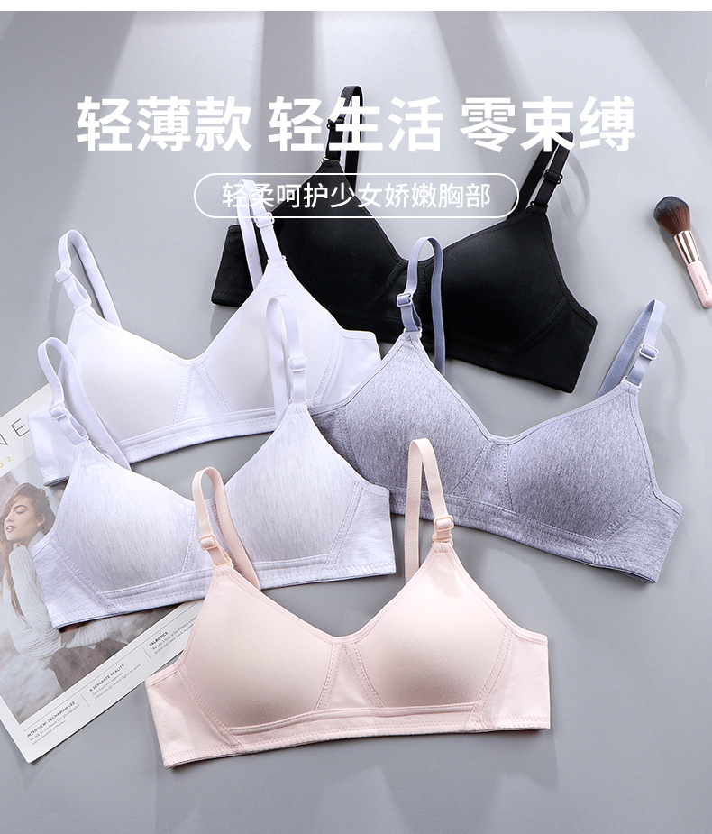 발달기 소녀용 속옷 순면 얇은 컵 무와이어 브라 편안하고 통기성 좋은 고정컵 청소년 학생용 브라