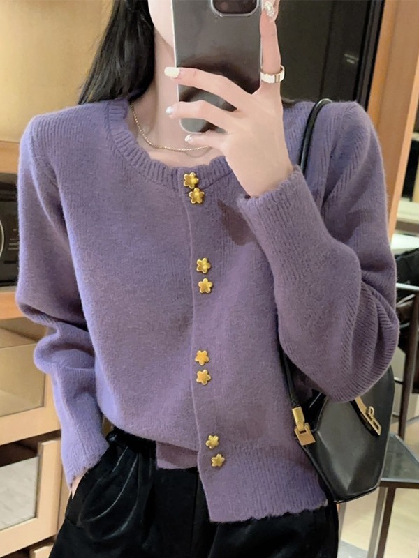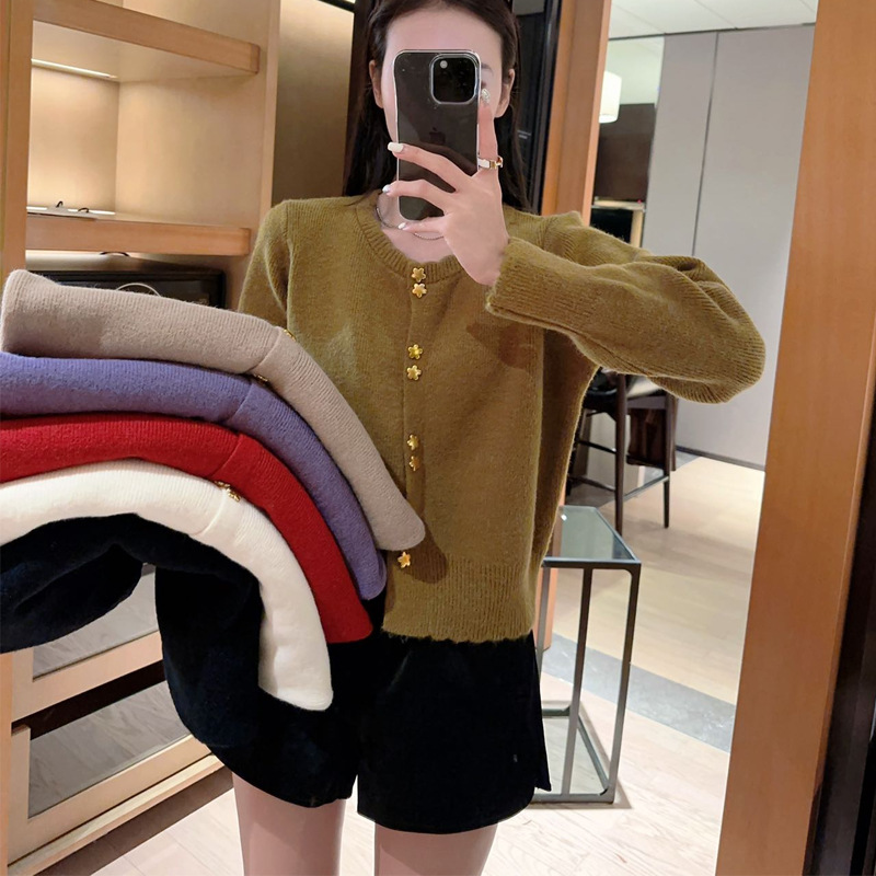 가을과 겨울 울베이스 셔츠 새로운 여성 슬리밍 모든 매치 니트 가디건 패션 세련된 연령 감소 스웨터스토어 가기