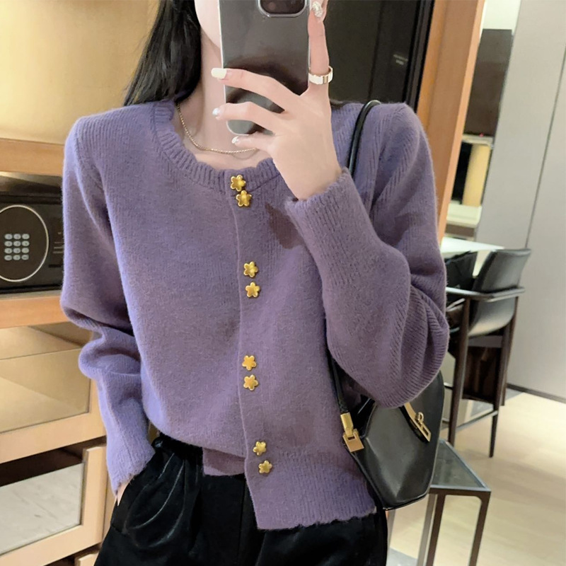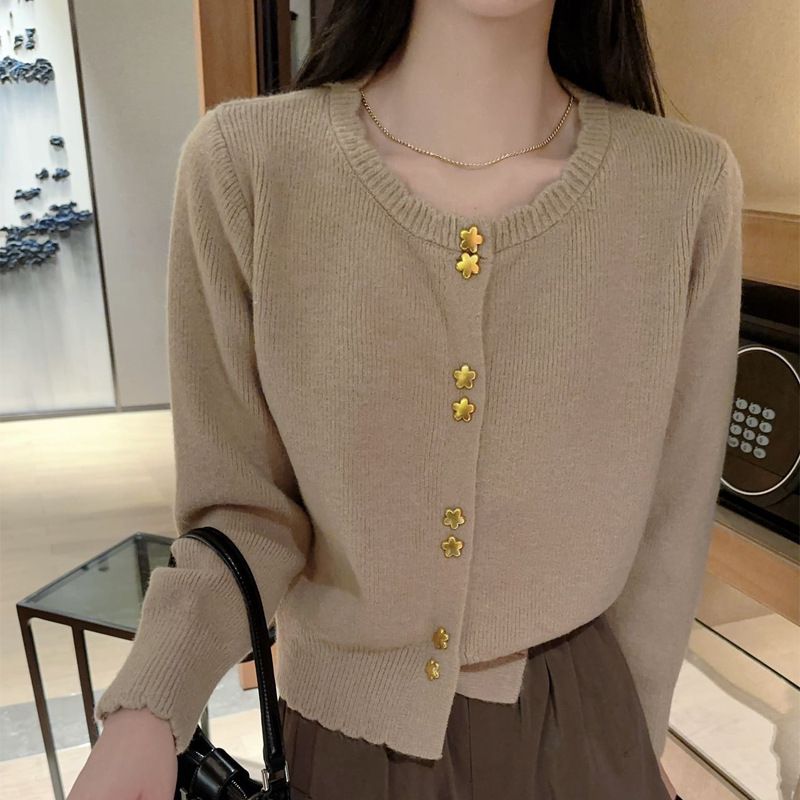 가을과 겨울 울베이스 셔츠 새로운 여성 슬리밍 모든 매치 니트 가디건 패션 세련된 연령 감소 스웨터