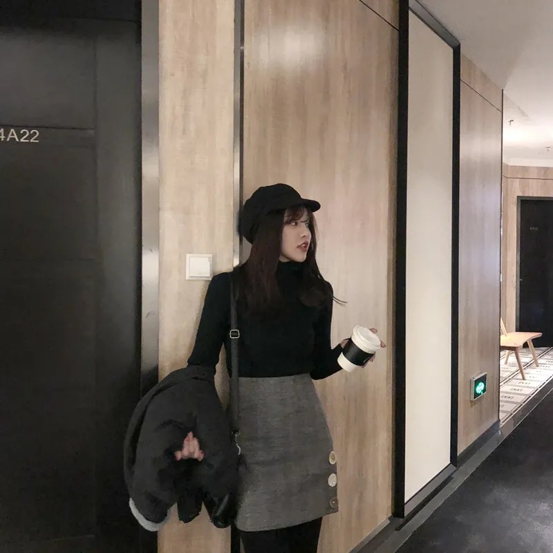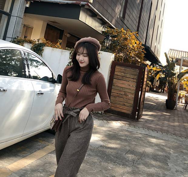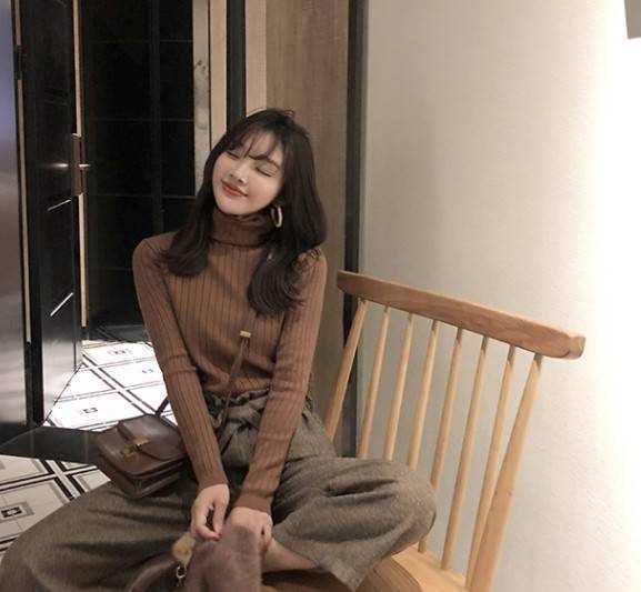 크로스 보더 터틀넥 하의 셔츠 여성의 가을과 겨울 새로운 내부 티셔츠 레트로 세련된 슬림 핏 모든 매치 니트 스웨터 탑스토어 가기