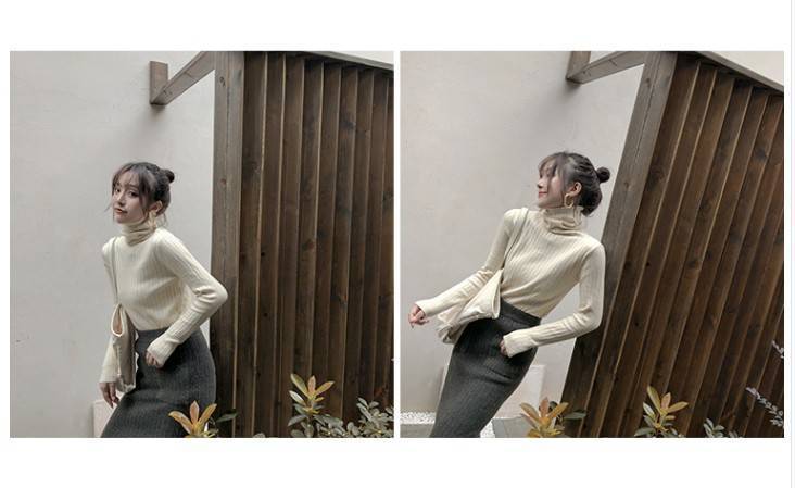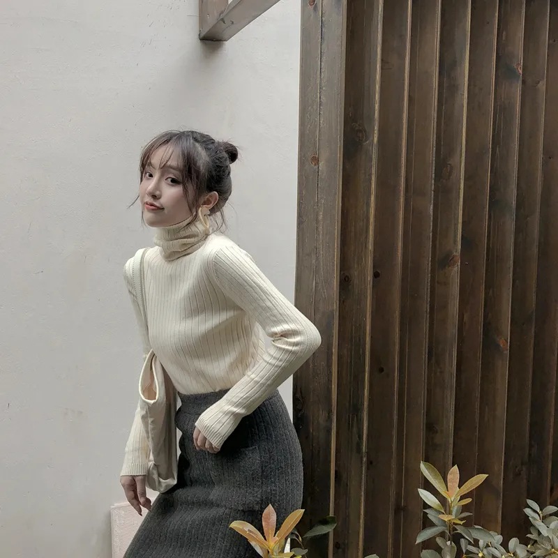 크로스 보더 터틀넥 하의 셔츠 여성의 가을과 겨울 새로운 내부 티셔츠 레트로 세련된 슬림 핏 모든 매치 니트 스웨터 탑