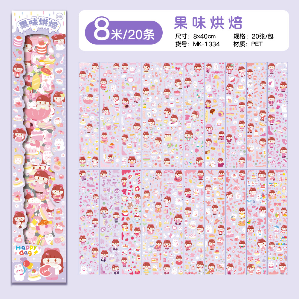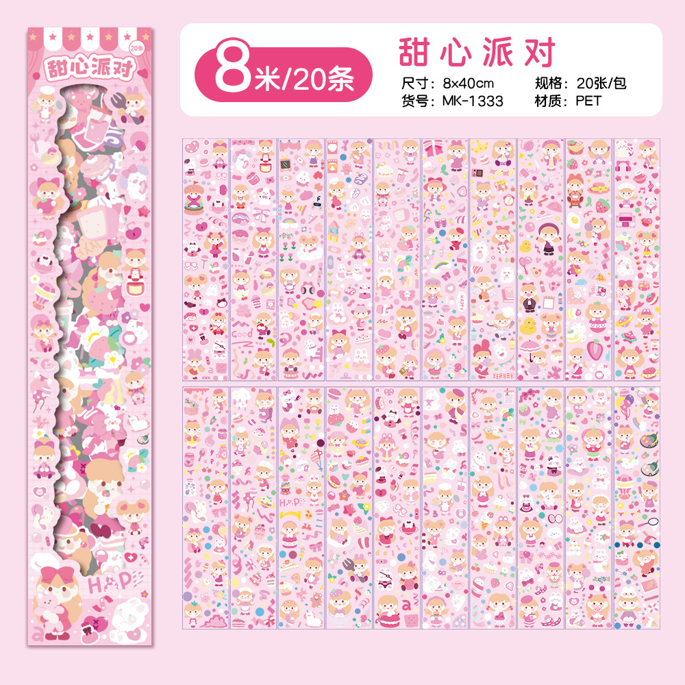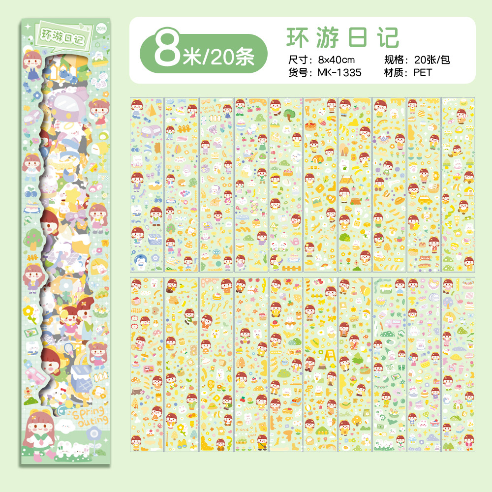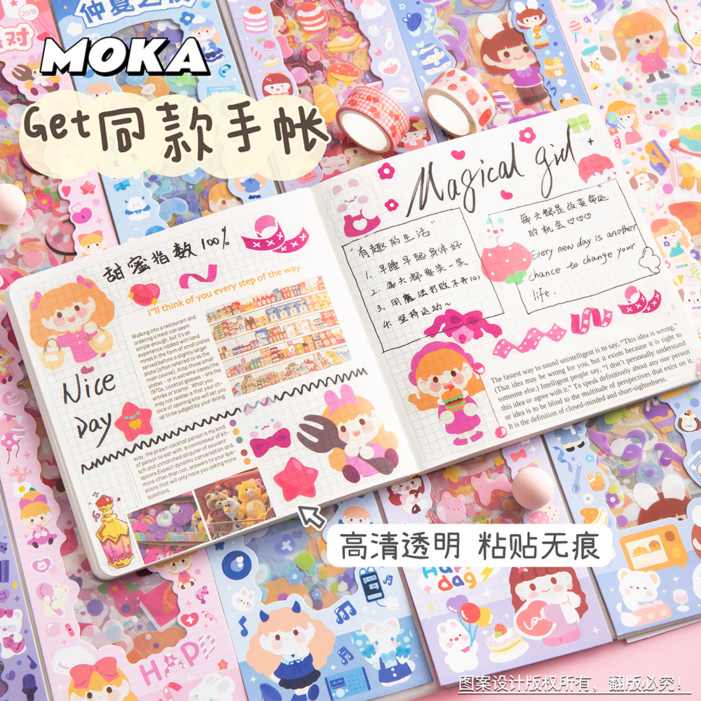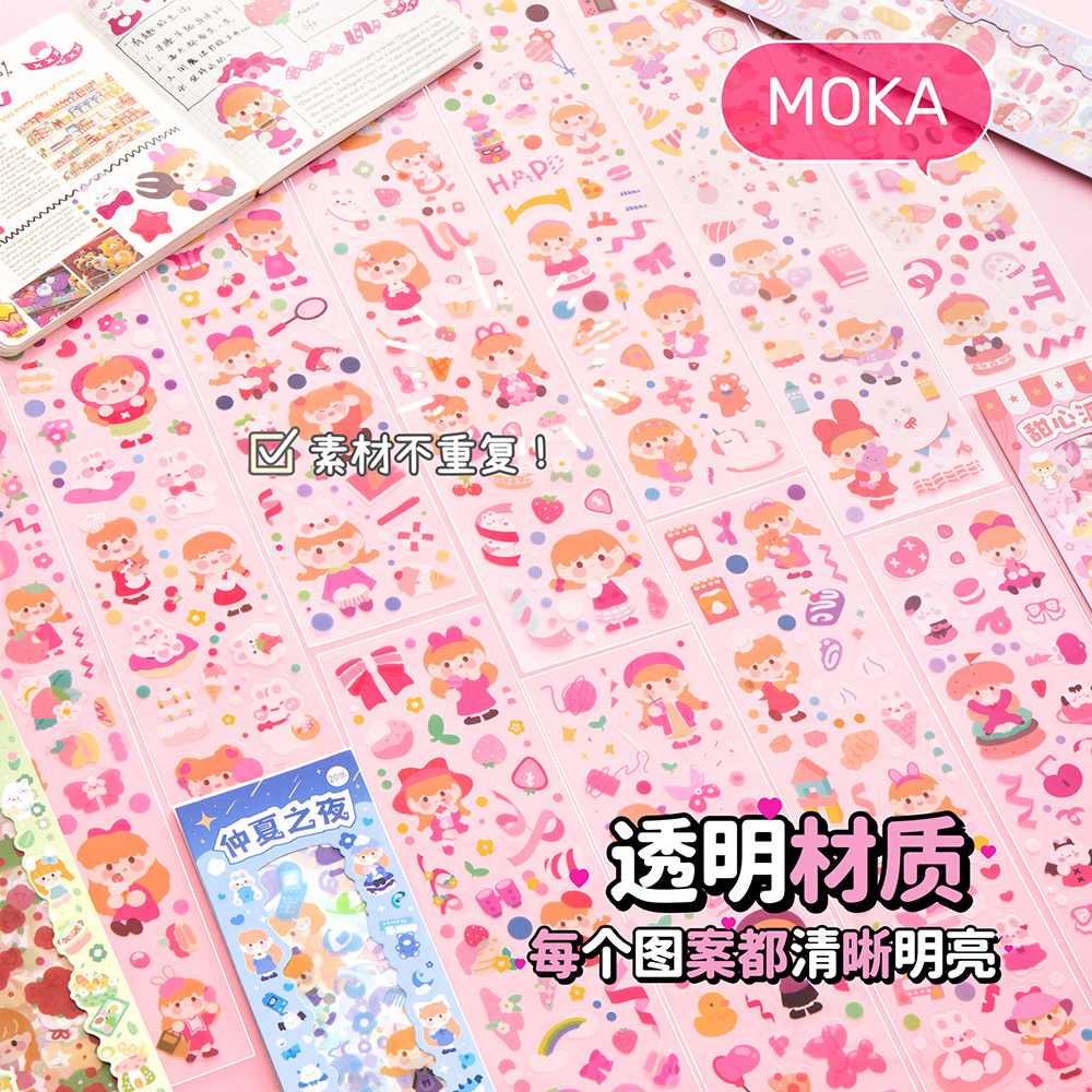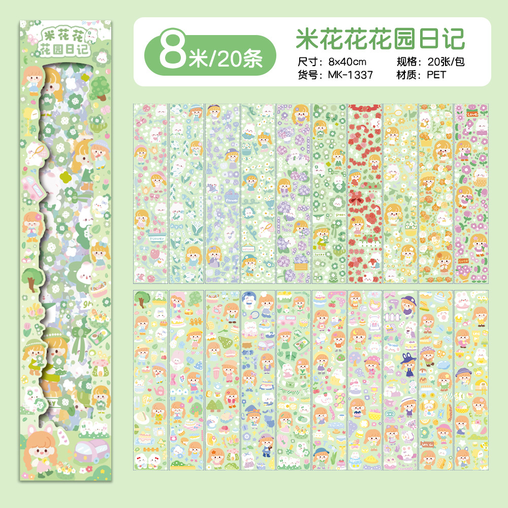 크리 에이 티브 만화 PET 긴 손 계정 스티커 소녀 멀티 패턴 장식 투명 방수 비 마킹 DIY 스티커 도매