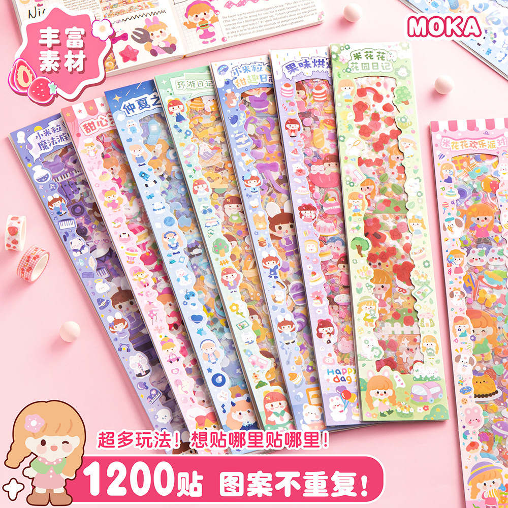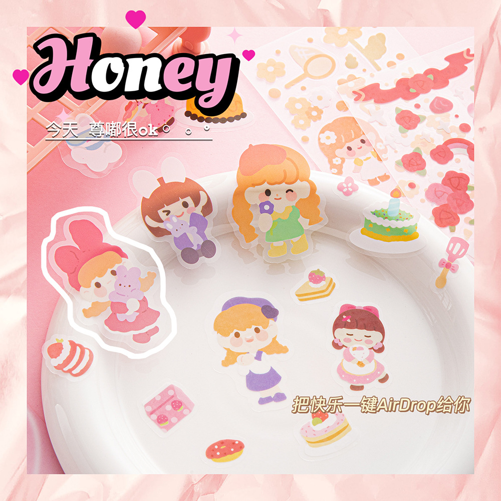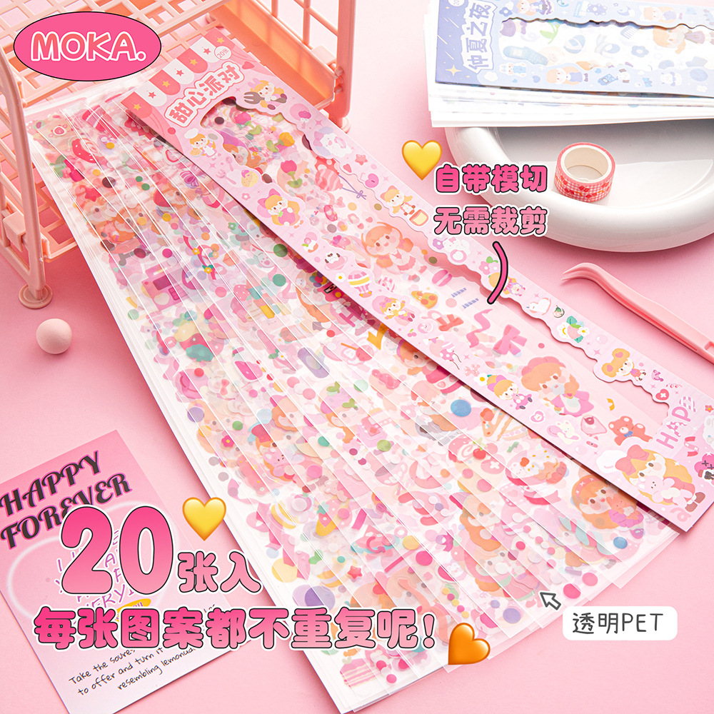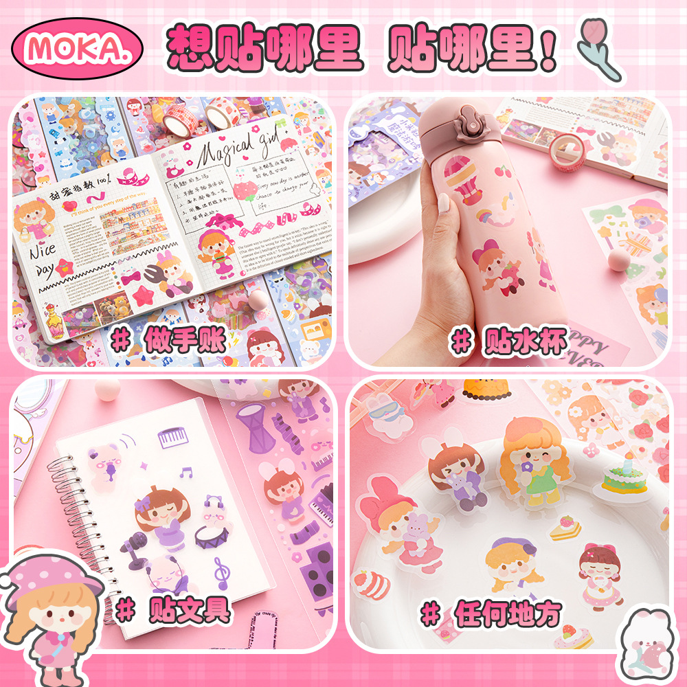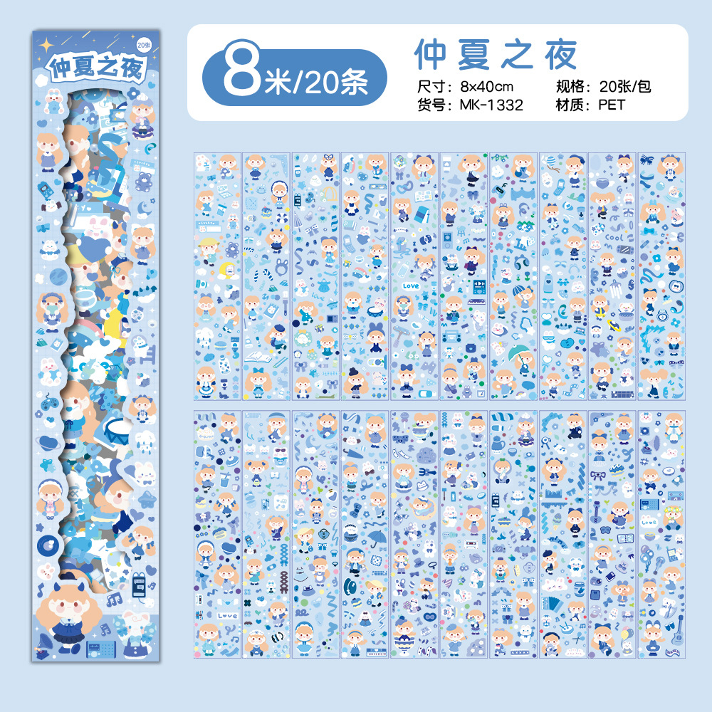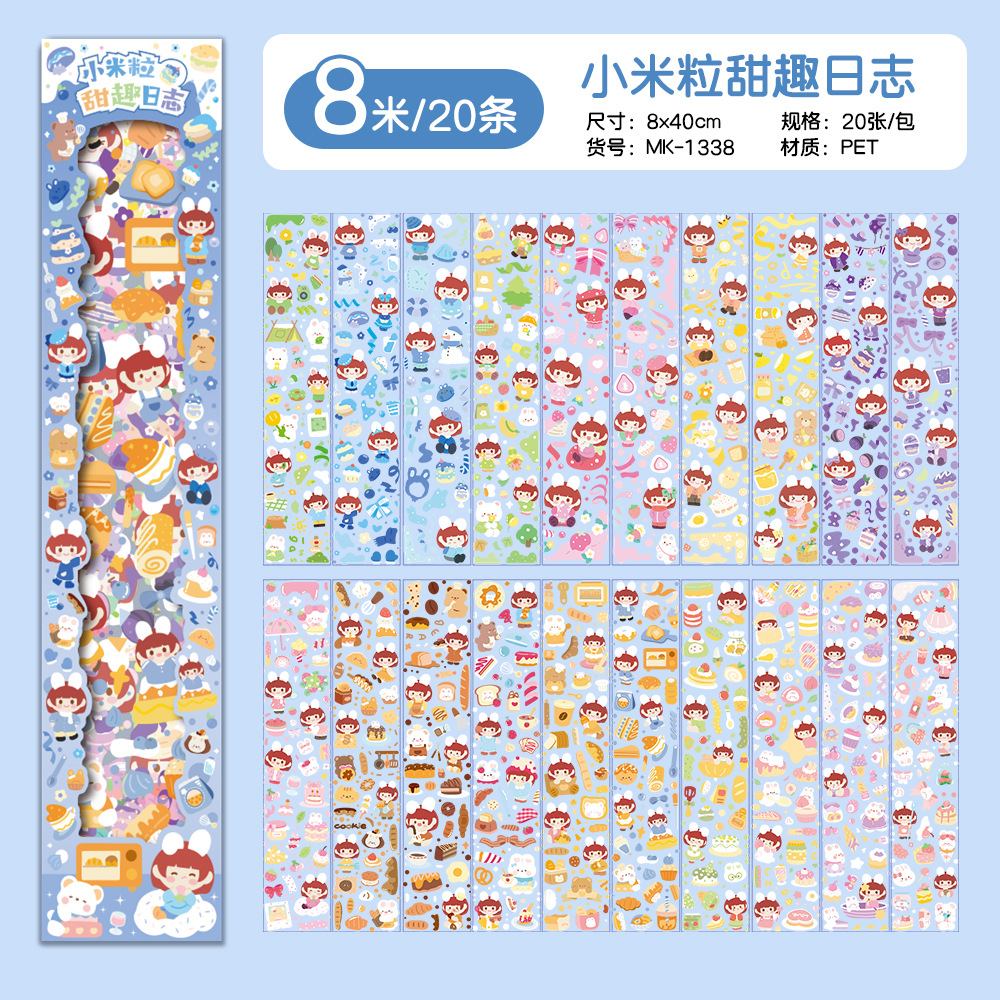 크리 에이 티브 만화 PET 긴 손 계정 스티커 소녀 멀티 패턴 장식 투명 방수 비 마킹 DIY 스티커 도매