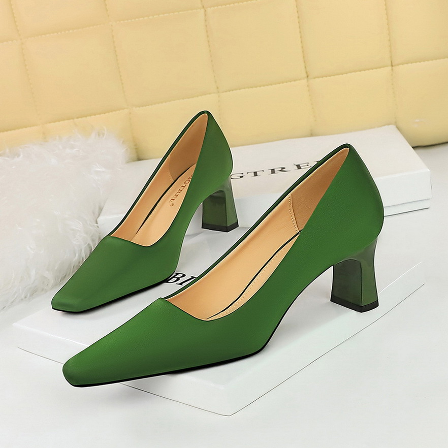 6186-2 한국 패션 조커 심플 페디큐어 하이힐 두꺼운 굽 얕은 스퀘어 헤드 새틴 여성 신발 하이힐 싱글 슈즈