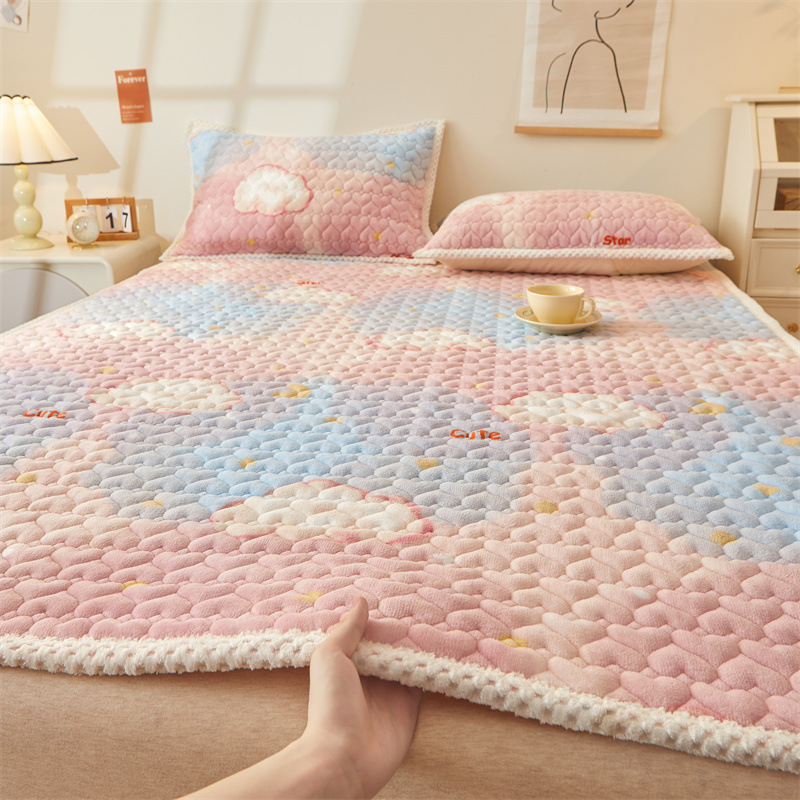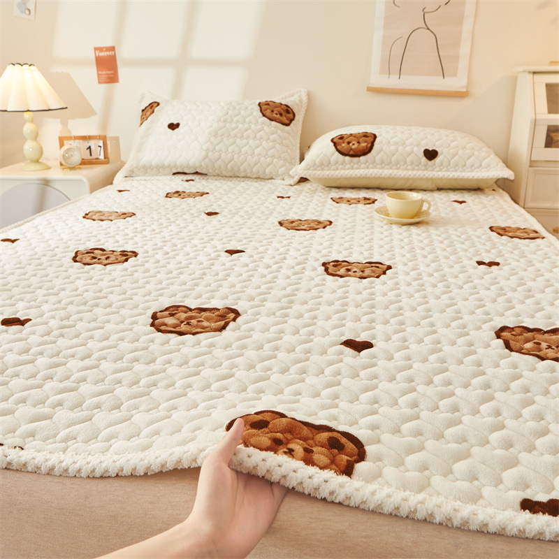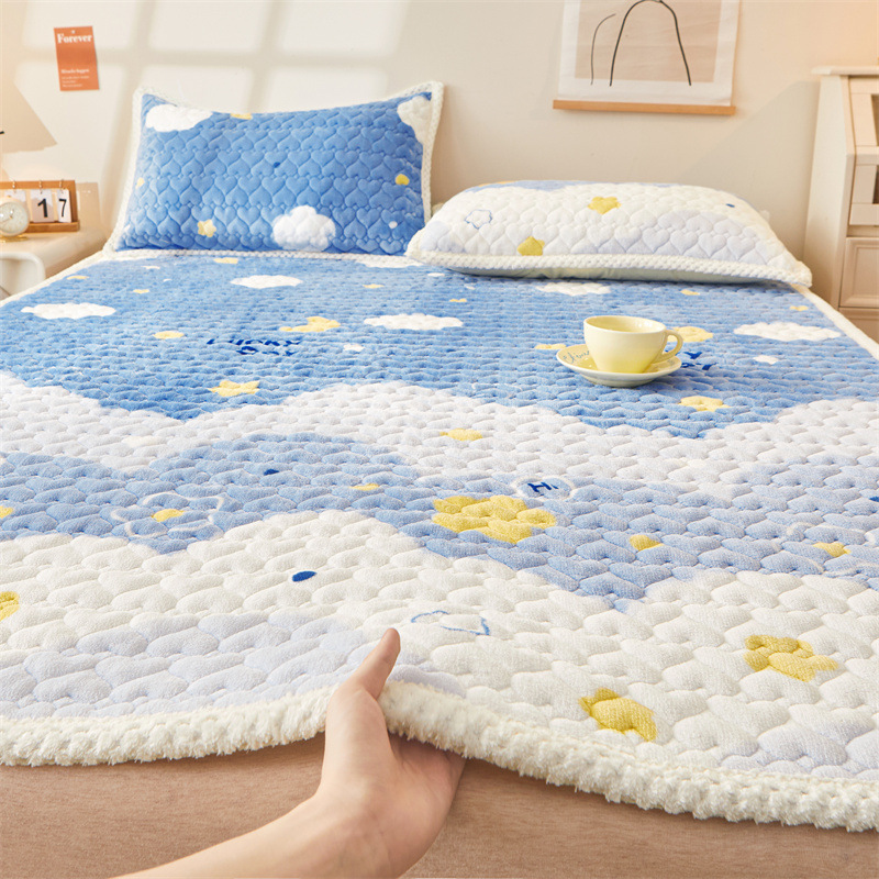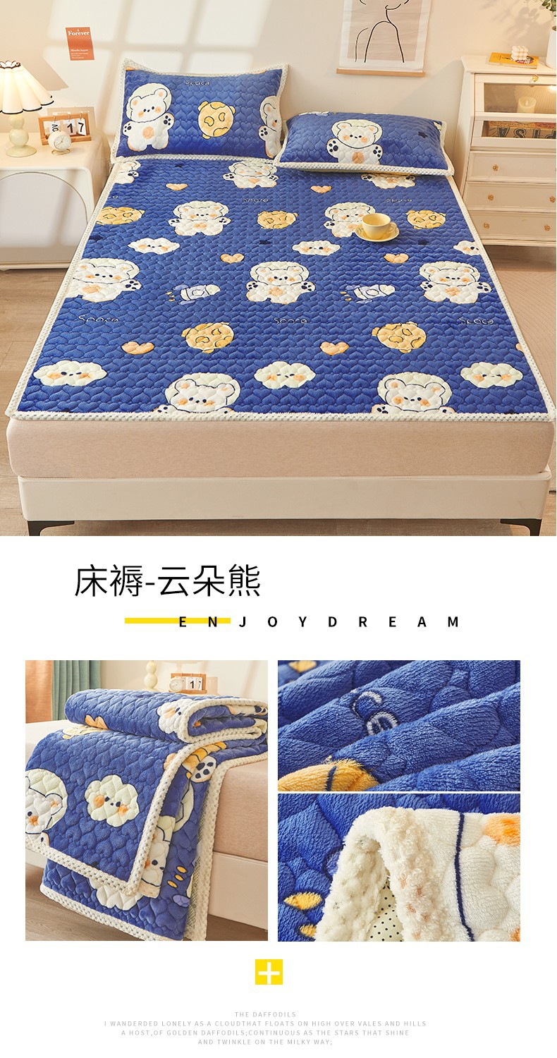 카테고리 두꺼운 우유 벨벳 침대 커버 겨울 기모 매트리스 침대 시트 보호 매트 다다미 매트 매트리스 기계 빨
