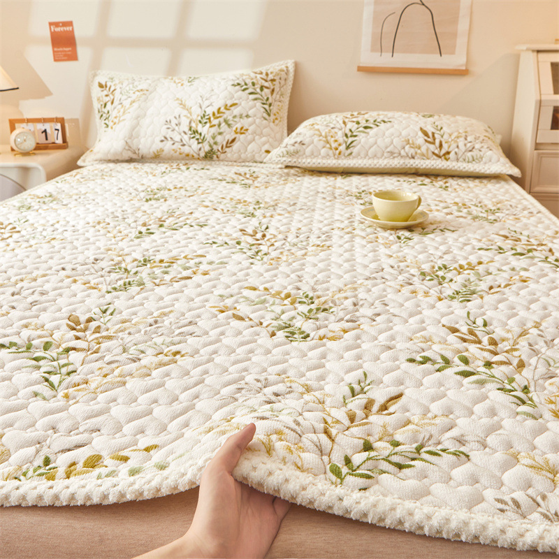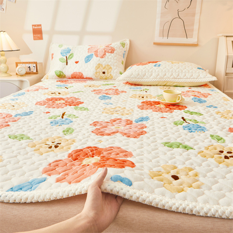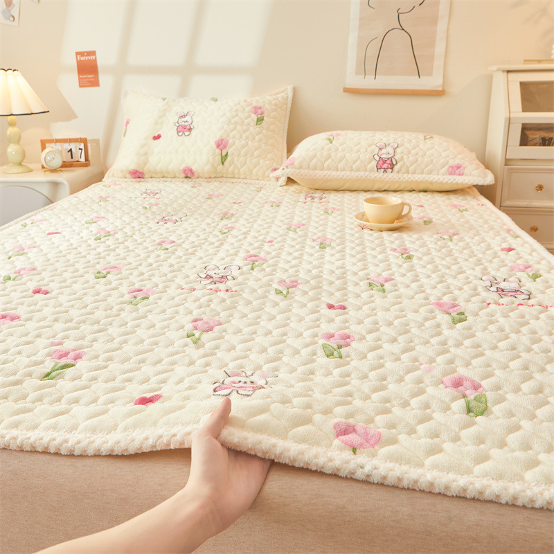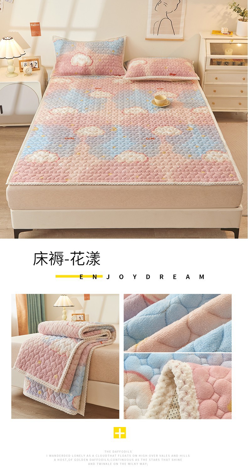 카테고리 두꺼운 우유 벨벳 침대 커버 겨울 기모 매트리스 침대 시트 보호 매트 다다미 매트 매트리스 기계 빨